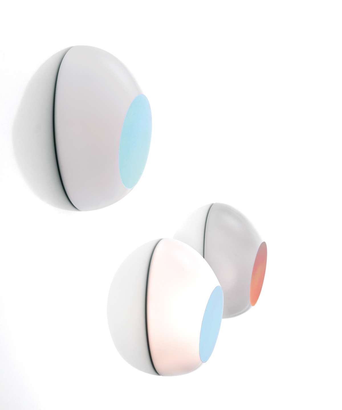 This lamp comes in a single finish that changes color depending on the vantage point. The in-mold decoration technique makes the iridescent film that creates these shifting hues become an integral part of the polycarbonate diffuser.