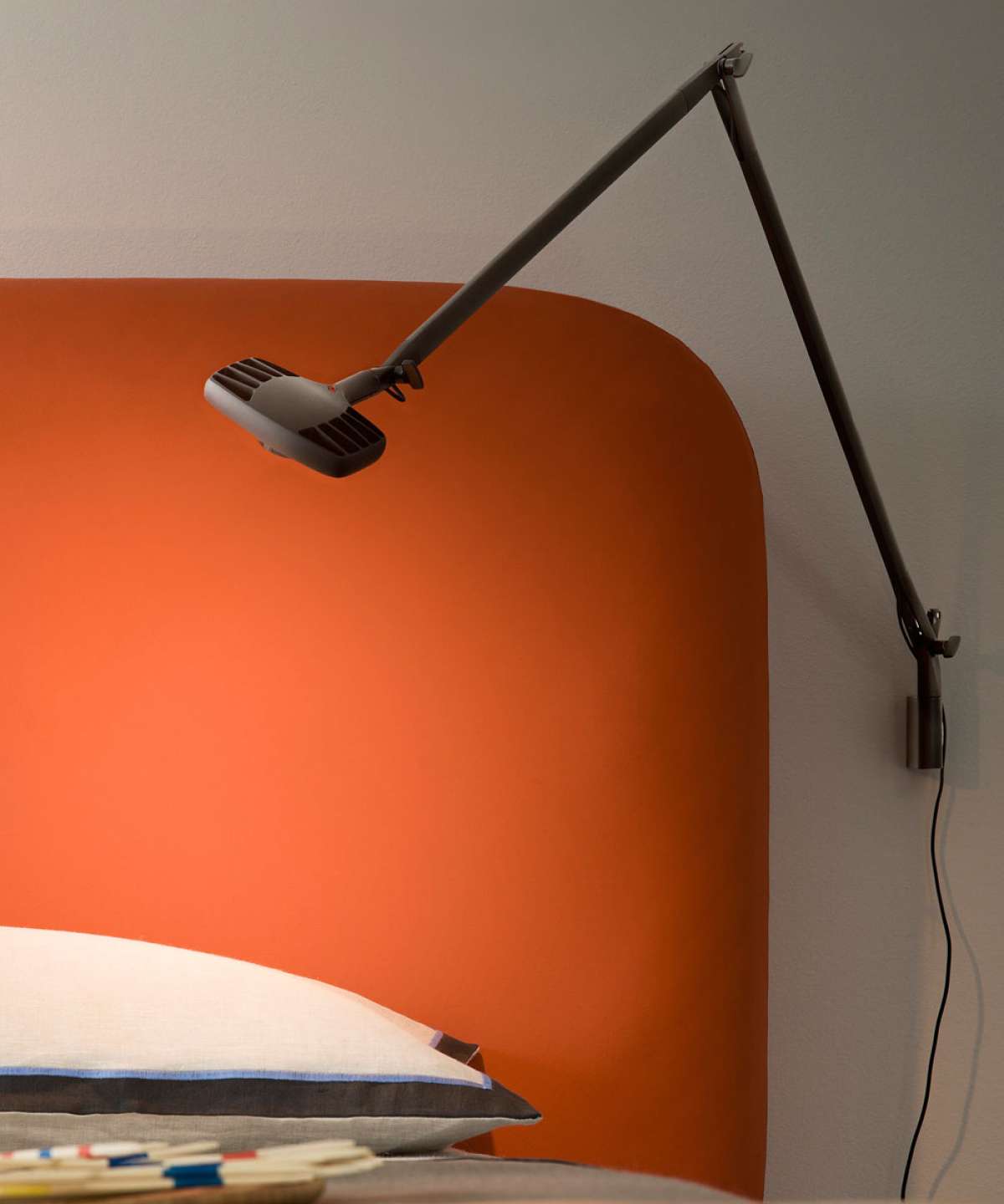 The Otto Watt wall model is a concentrate of efficiency and flexibility. Reinterpreting the classic spring lamp, Otto Watt is extremely manageable and stable, thanks to its slim but solid lines. The shade can be adjusted across 360° for direct or indirect lighting.