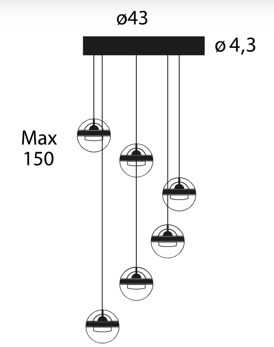 The height and position with respect to the central axis of the individual elements are easily adjustable during installation, thus leaving the possibility of customizing the aesthetic appearance and the luminous effect of Limbus Chandelier.