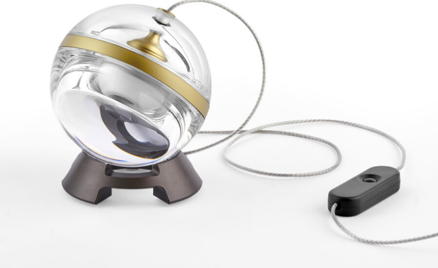 A small turned aluminum base houses the Limbus body, thus giving the lamp the ability to direct the light beam in all directions.