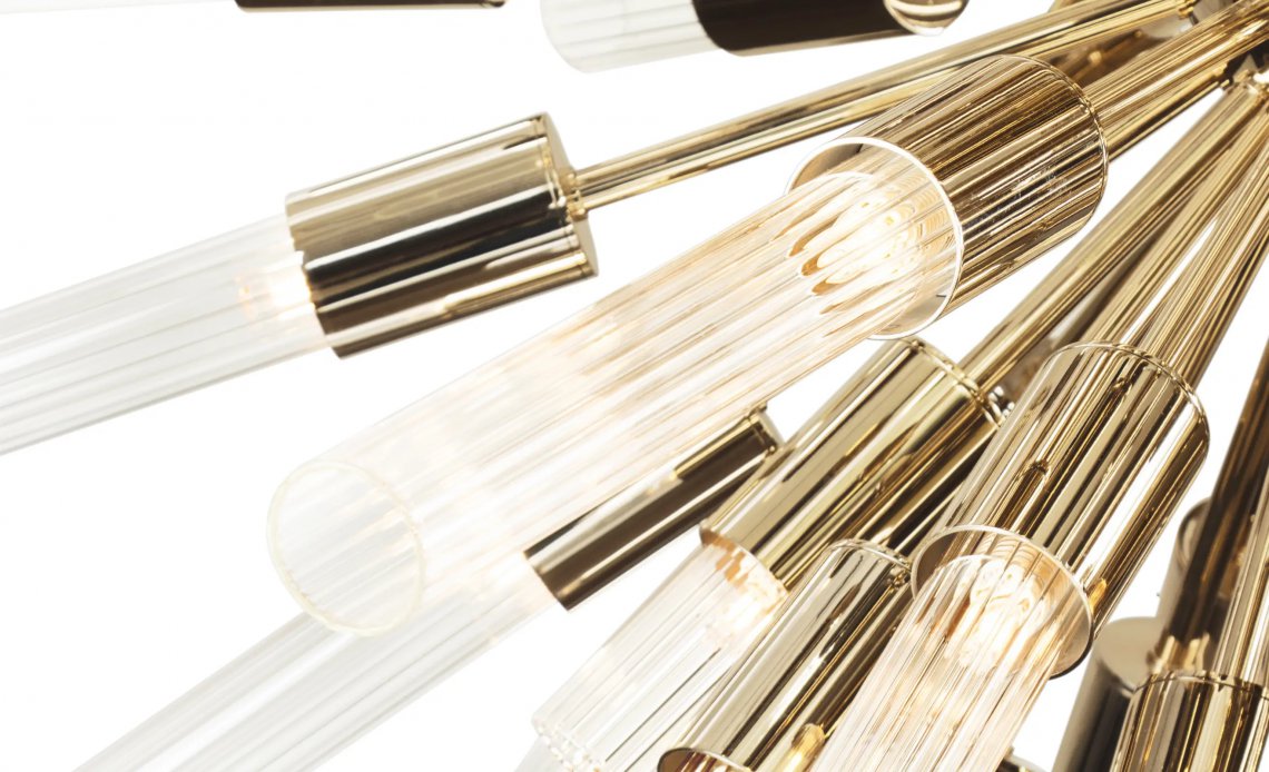 Waterfall Chandelier is made with the best handmade techniques, high-quality materials as gold-plated brass. A luxury chandelier with smooth and elegant shapes of the ribbed fine tubes of crystal glass and the extraordinary circular levels sensations of waterfalls shows the exquisite capacity of this masterpiece to fill a contemporary loft as well as a luxury lobby.