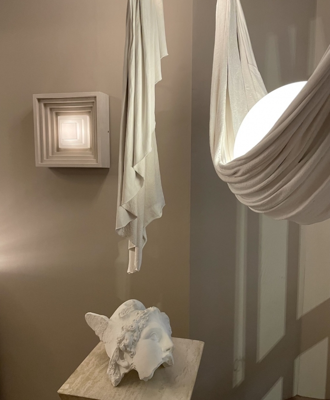 Requiem is an ethereal series of limited-edition pieces. Each sculpted by hand, by Lee Broom in our London factory. The collection takes inspiration from the marble drapery on ancient statues and sepulchral sculptures. Each piece appearsweightless and fluid but is solid in form, made by hand-draping fabrics in plaster through and around illuminated glass. These ghostly forms are then sculpted with more plaster into their final shape and set until solid. The effect is one of fragile drapery that appears to capture a floating light source. To celebrate the 15-year anniversary of Lee Broom, each of the four limited edition Requiem designs is limited to 15 pieces.