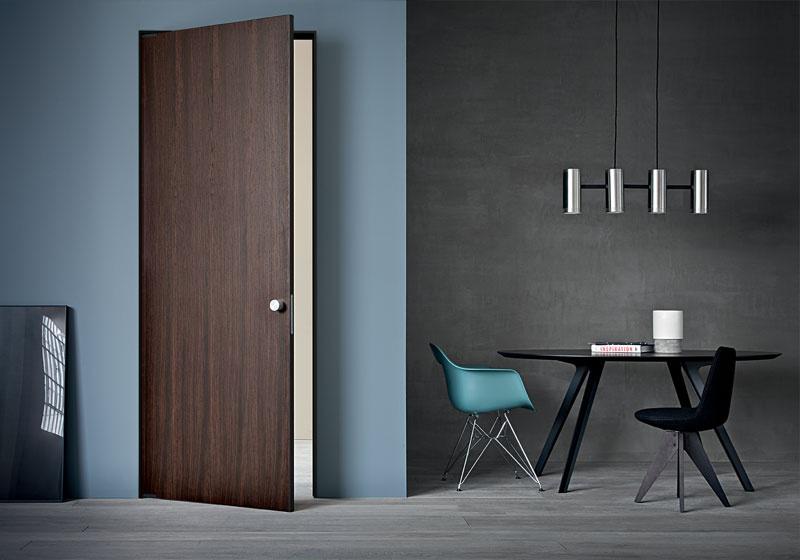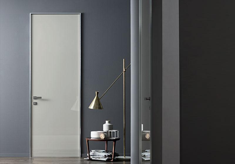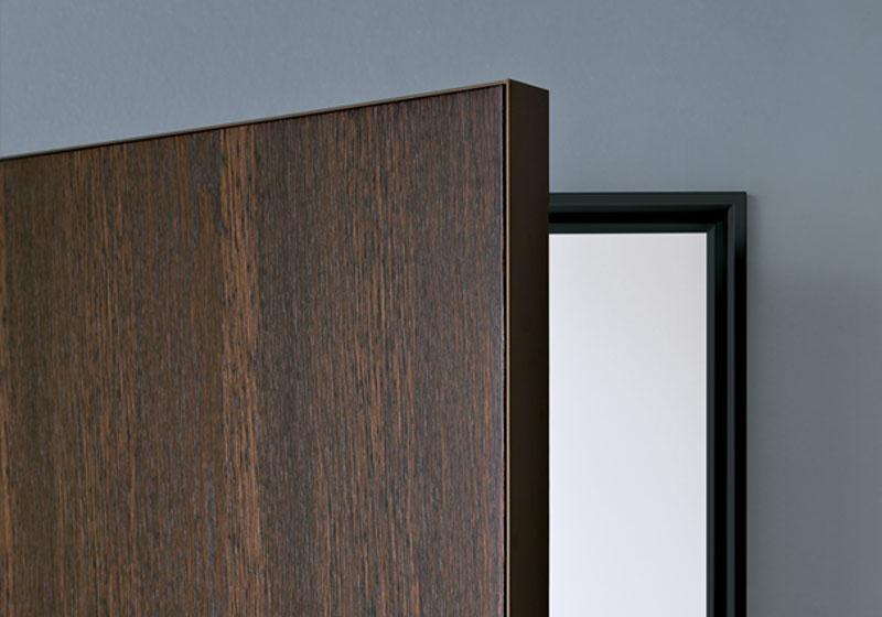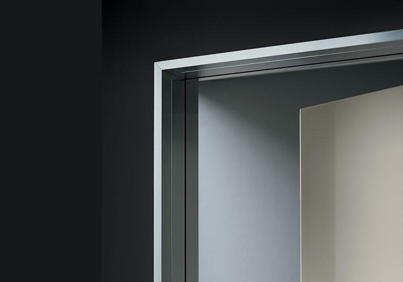 Designed by Piero Lissoni, L41 is distinguished by a thin metal jamb which enhances the light profile. Forming an original presence, it enhances the space through its sophisticated line created by the contrast between the depht of the aluminium door jamb and flushness of the wall and the door.
