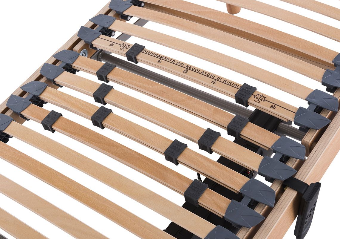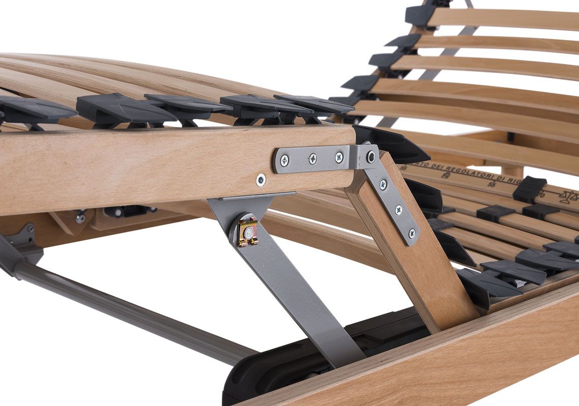 The Ergo Uno Elettrica adjustable base created by Magniflex, with its structure in birch, beechwood slats and rubber shock absorbers, ensures optimal support to the body. With two motors and the handy remote control you can adjust the tilt and choose the comfort you want.