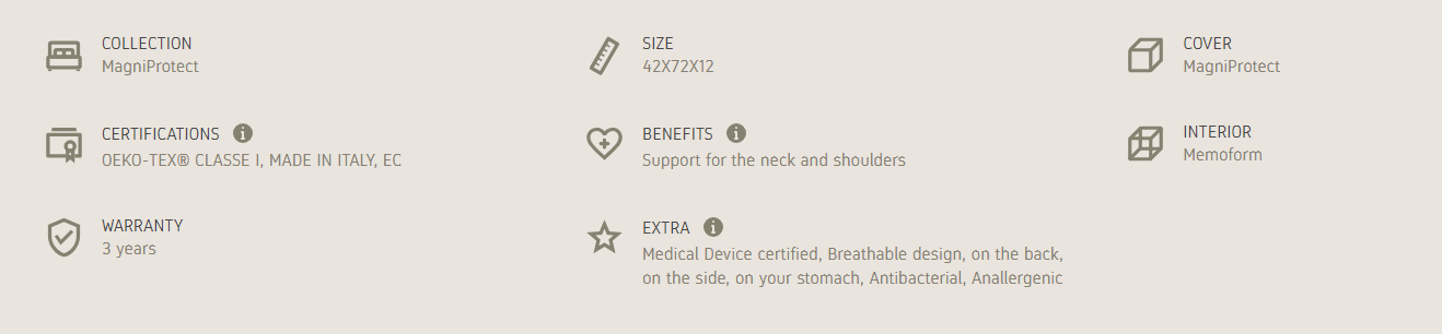 A traditionally shaped pillow with Memoform on the inside designed to provide maximum comfort to the neck and shoulders. The exclusive MagniProtect lining ensures effective protection against viruses and bacteria.