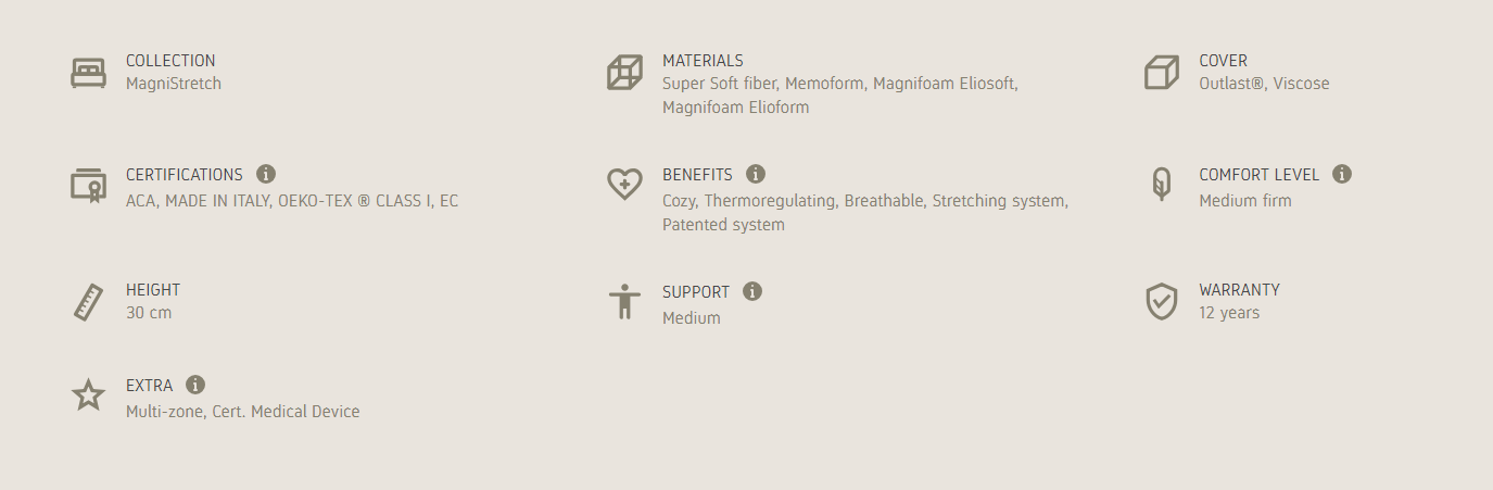 The technological and innovative mattress that ensures an exceptional benefit to the spine, thanks to the stretching and extension action exerted during your sleep, with a Medium Firm level of comfort.