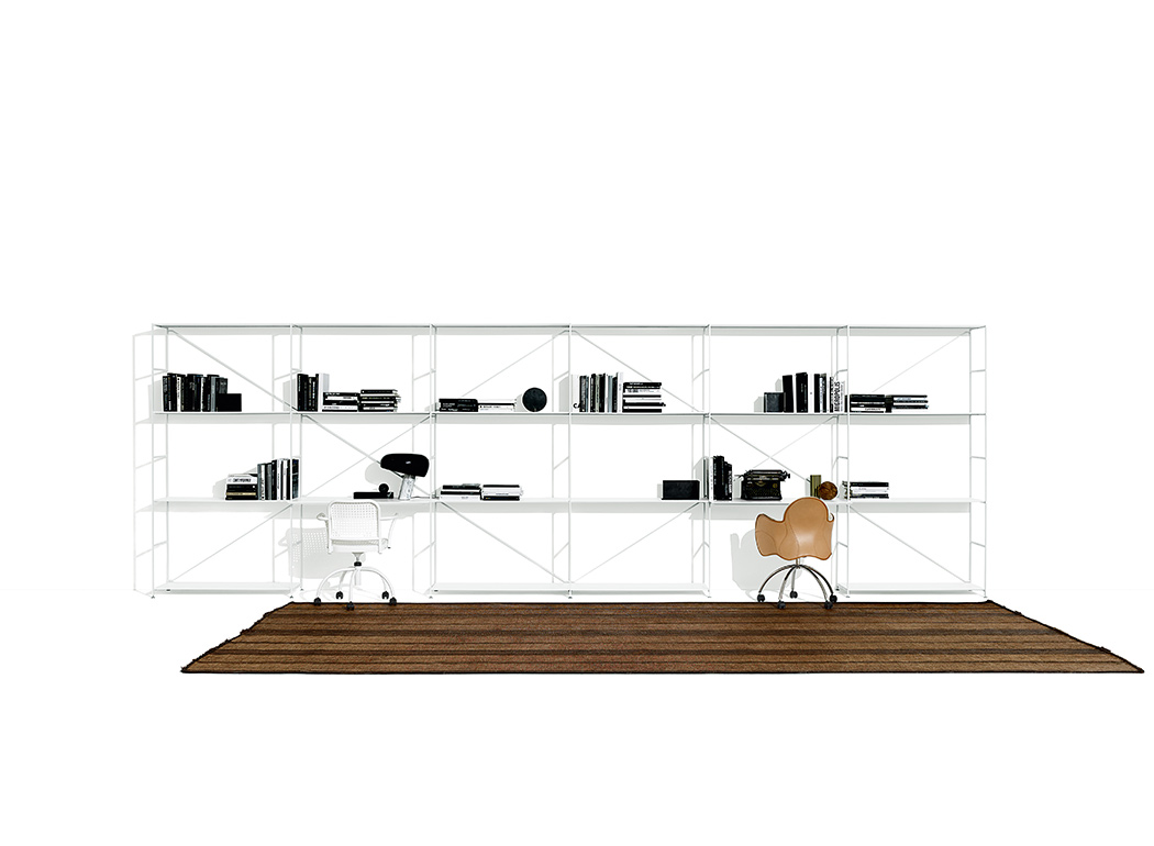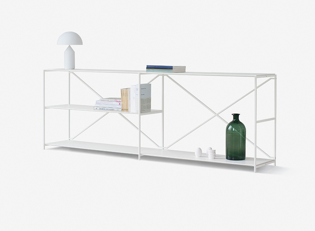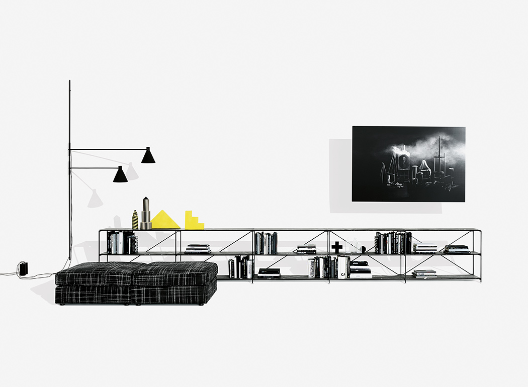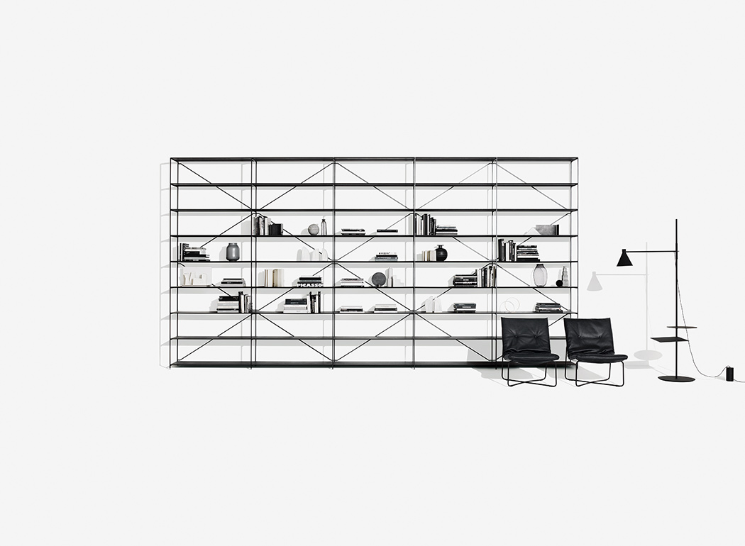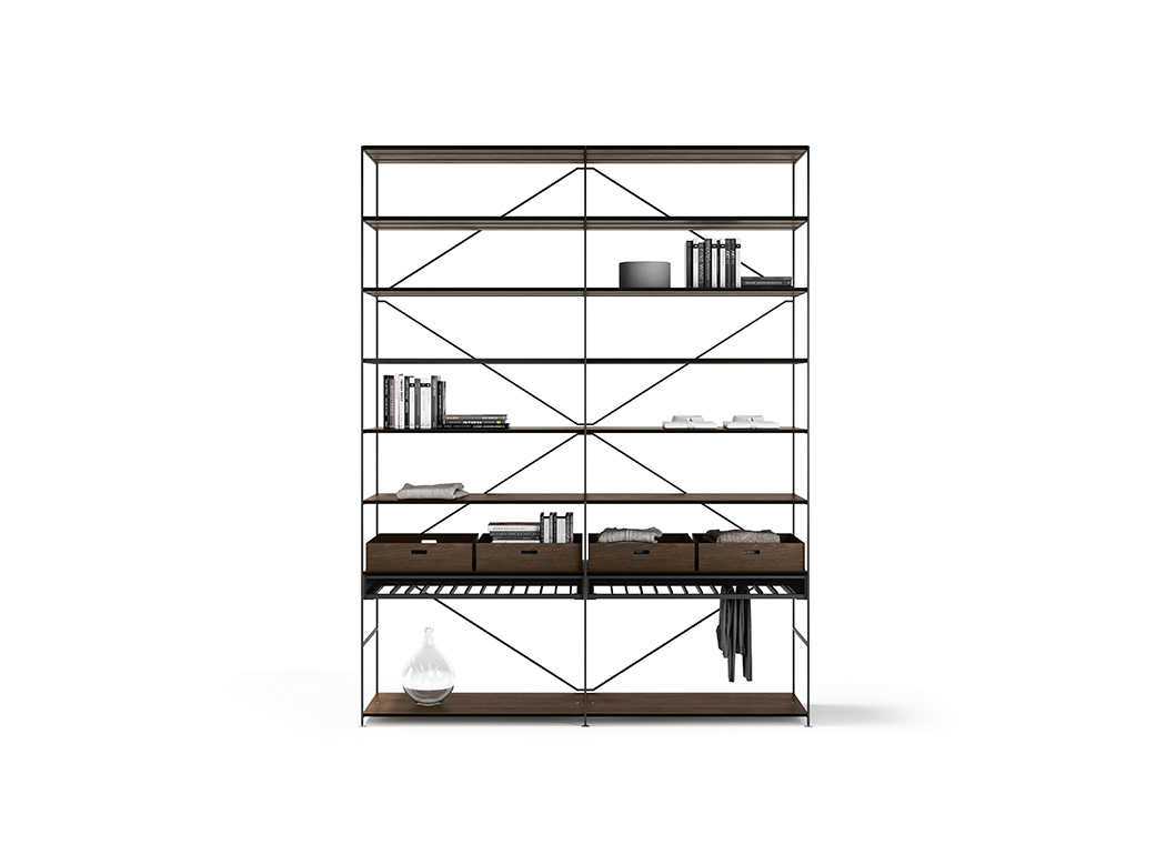 An ultra-flexible modular system with clean lines that helps organising storage spaces by drawing a geometric layout ideal for both domestic and professional spaces. The minimal modules blend in harmoniously attention to industrial, yet precious materials and rigorous design functionality.