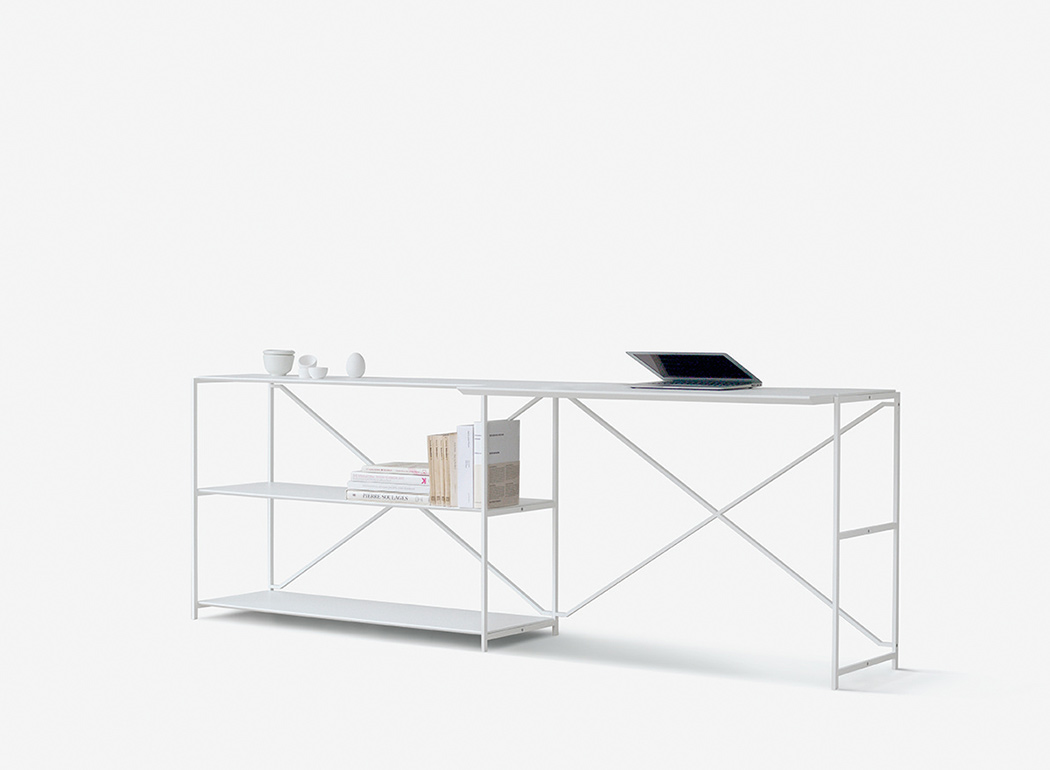 The R.I.G. Modules shelving system is designed from the idea of joining simple principles; optimized use of materials, enhanced functionality and a minimalist expression. Only a handful of components, that connects in numerous ways, all attached by using the universal screw; “R.I.G. joint”, creates this diverse shelving system. An uncompromised choice of materials and the graphic stabilizing system ensures a stunning stability.