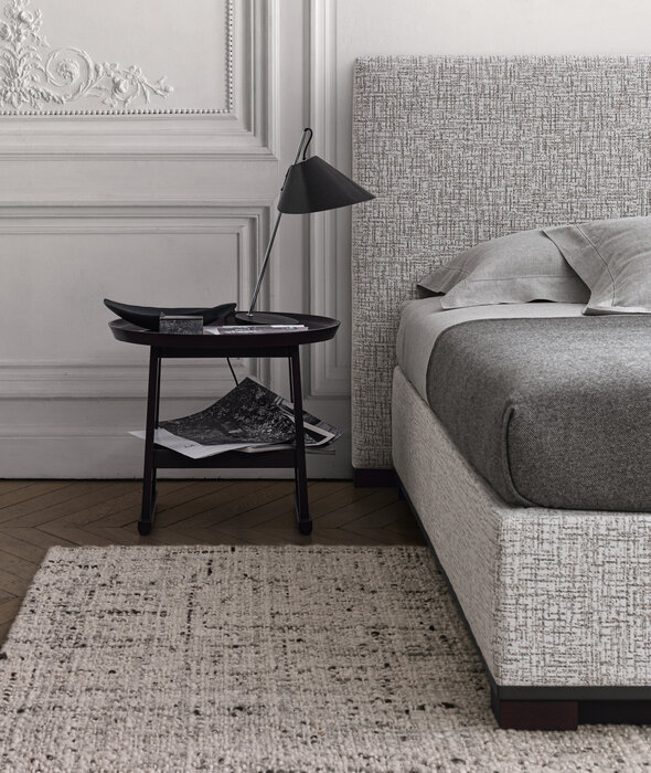 The Bauci bed is provided with a slatted base that can be lifted and has a practical compartment below. The lower edge is in painted steel. A precious detail is given by the peripheral base of solid wood which can be chosen between different colours. The bed can be combined with all the headboard included in the collection.