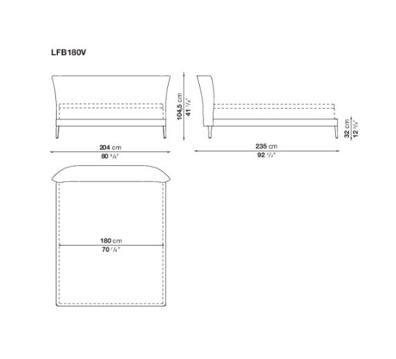 The Febo bed is available in different sizes with an elegant headboard and the added comfort of two back cushions. The single material and the visible blanket stitch are the characteristic features.