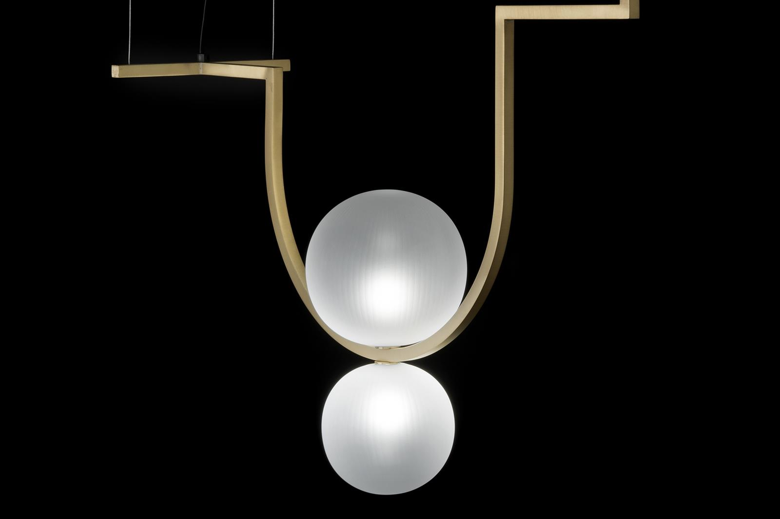 Suspension lamp. Hand blown titanium metallized glass dome with internal frosted bubble glass sculpture.