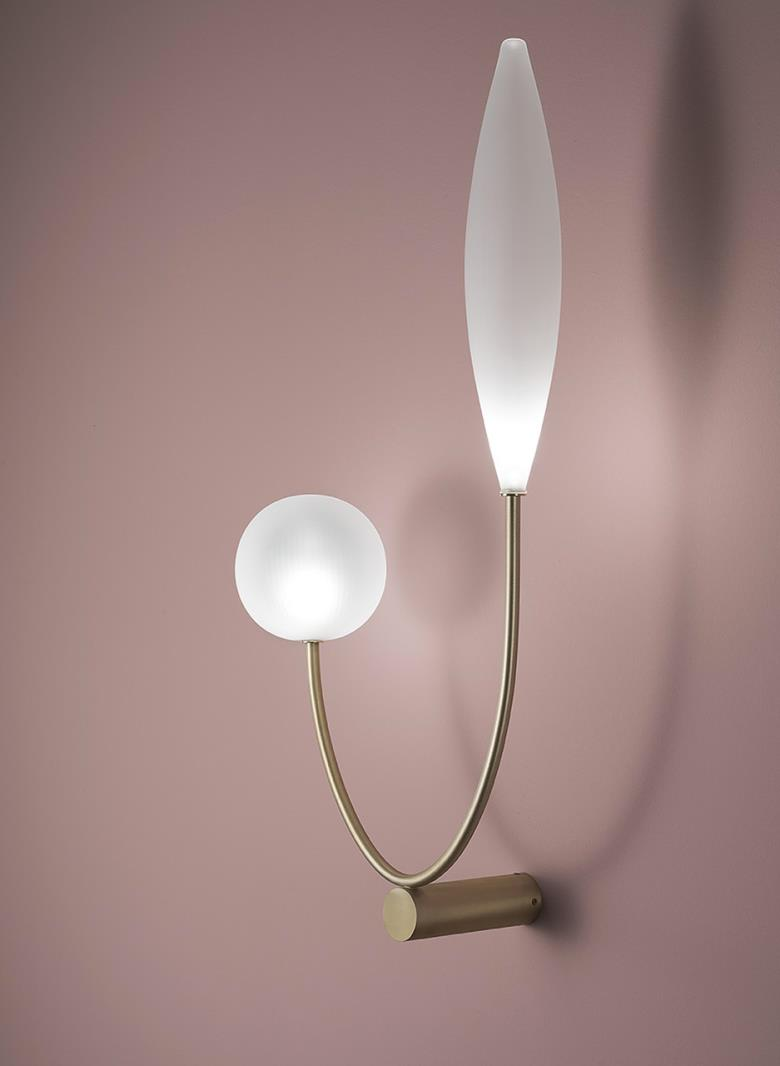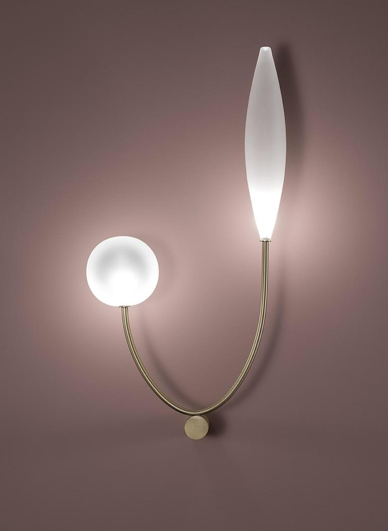 Suspension lamp. Hand blown titanium metallized glass dome with internal frosted bubble glass sculpture.