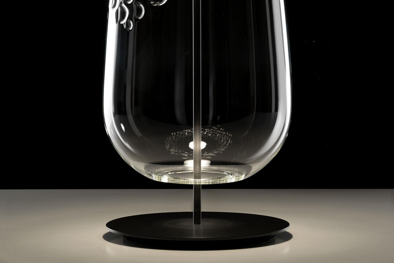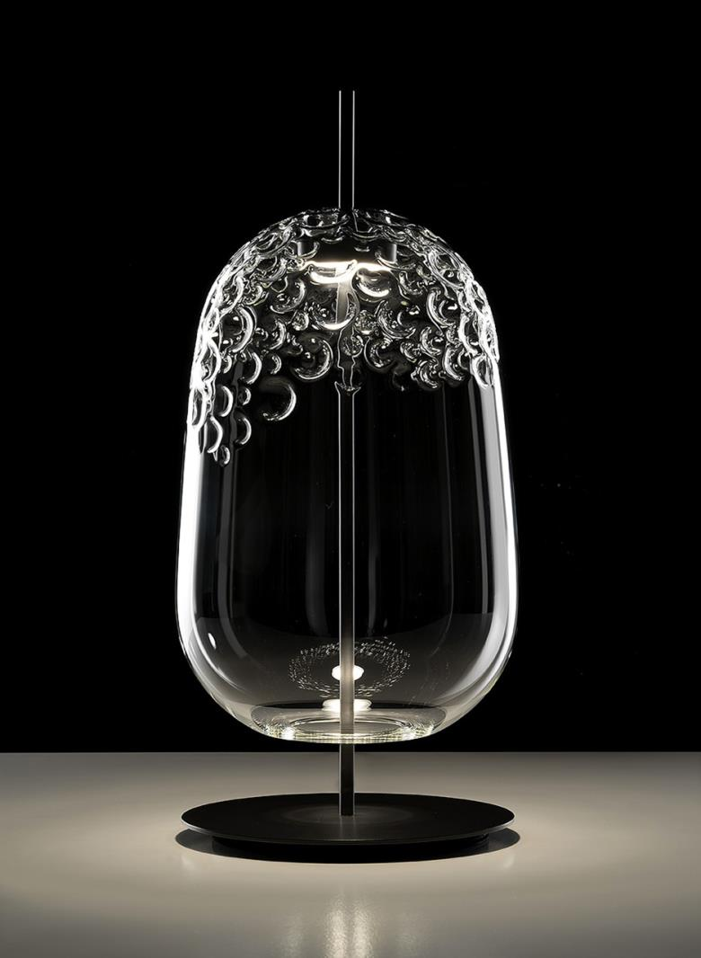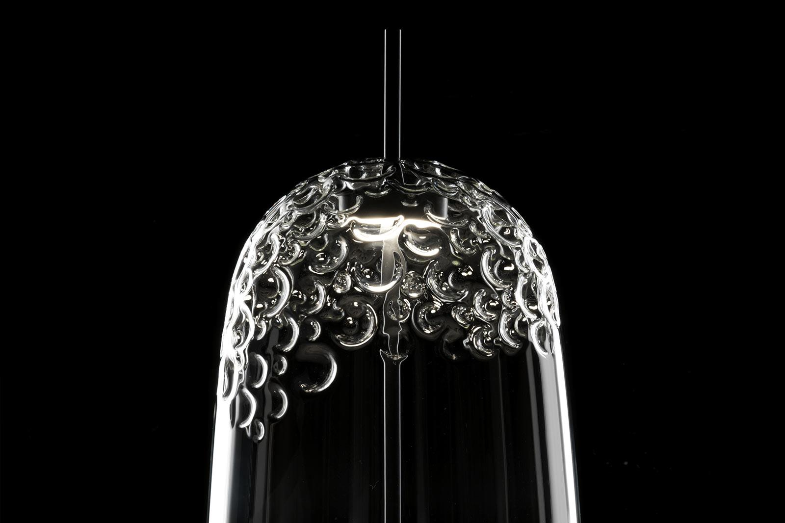 Suspension lamp. Hand blown titanium metallized glass dome with internal frosted bubble glass sculpture.