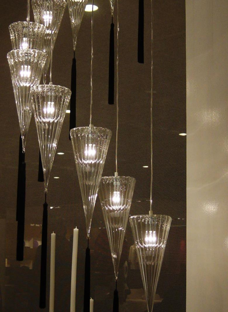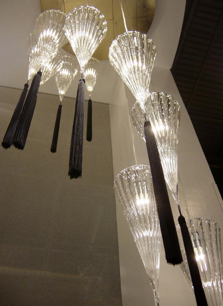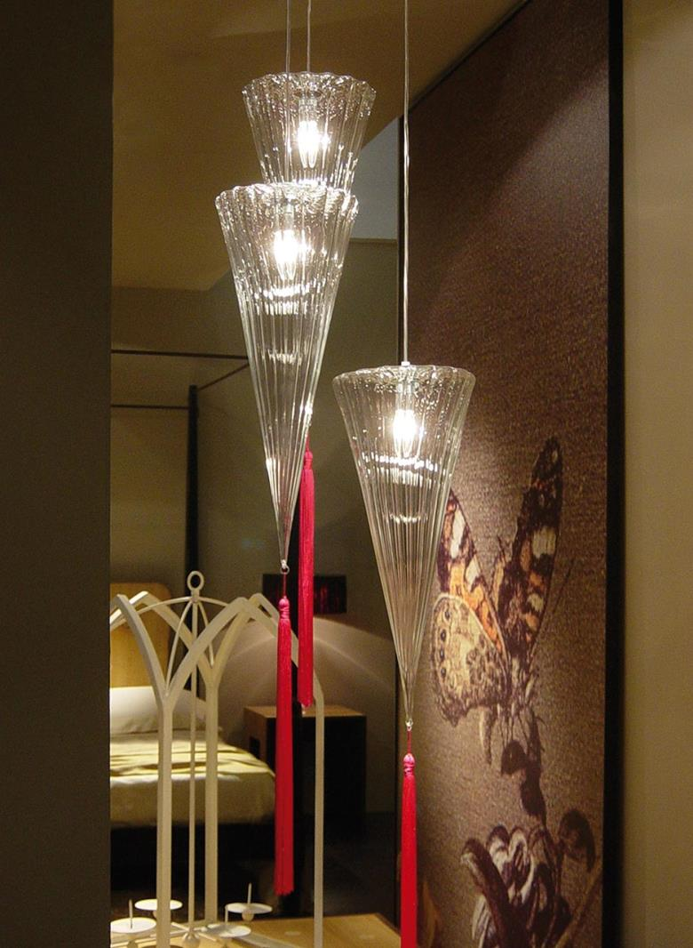 Suspension lamp. Hand blown titanium metallized glass dome with internal frosted bubble glass sculpture.