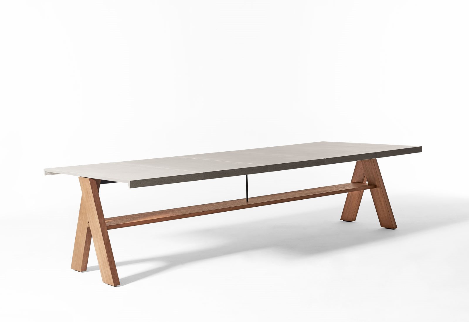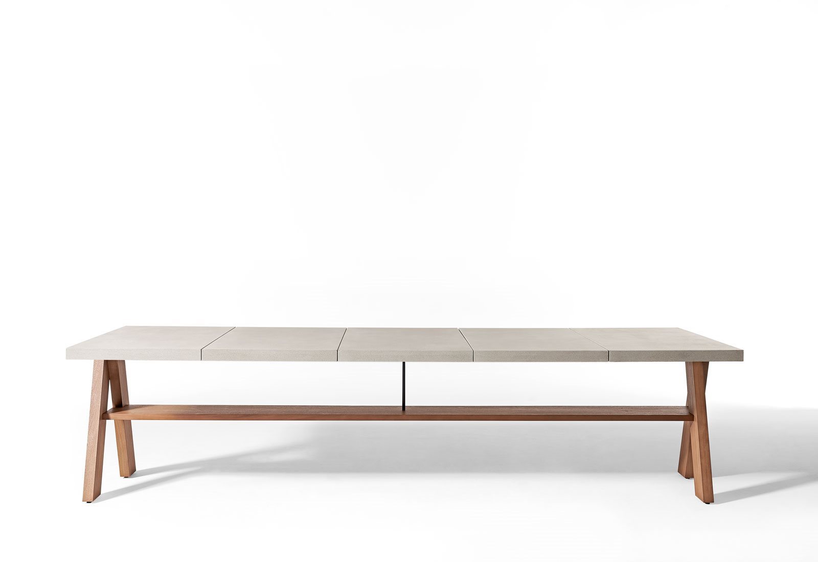 獻給那些喜歡材料本質之美的人們:伊羅科實木和混凝土通過Joi Open Air變得栩栩如生. Joi Open Air匯集了不同大小的矩形桌子和方形邊桌,線條清晰。桌面專為戶外使用而設計,采用Ductal?混凝土制成,這是一種最高品質的材料,及其精細的天然礦物成分和有機纖維的組成,使其具有柔韌性。 淺灰色的飾面使Joi Open Air成為現代和城市舞臺的理想之選。