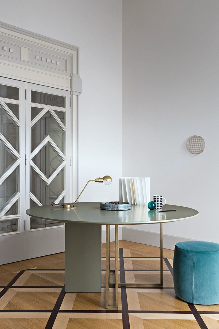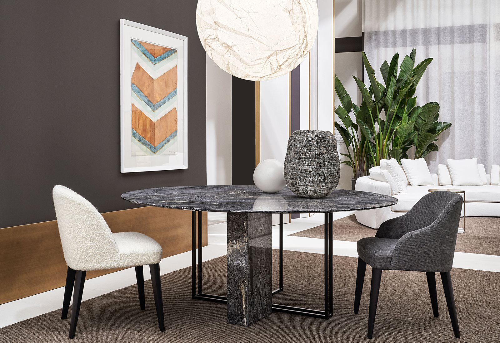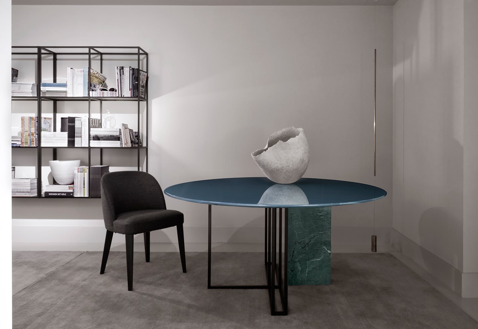 金屬底座的餐桌。 有不同型號和尺寸的臺面