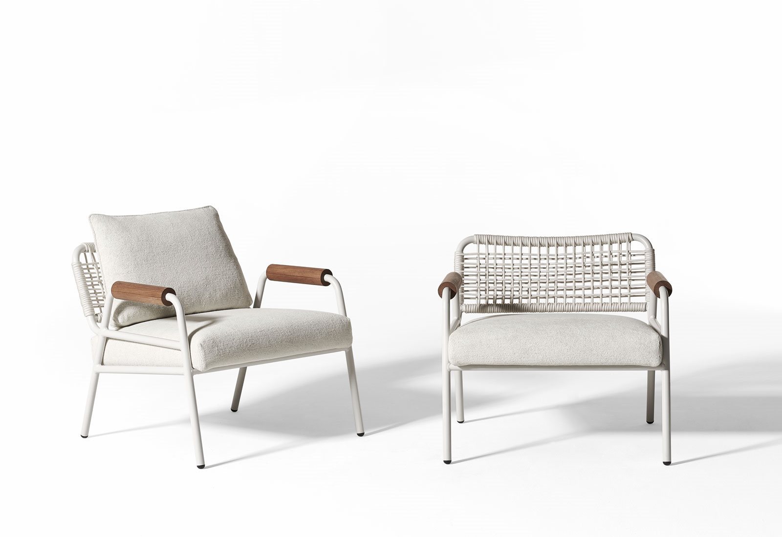 堅固的伊羅科木材,鋁材以及編織繩是Zoe Wood Open Air的靈魂:一系列的扶手椅以及戶外長凳,將室內的舒適氛圍傳達到了室外. 座椅扶手使用的伊羅科木材以及椅背編織方式的可選擇性,讓其看來更具通用性. 在鋁制框架上的聚丙烯繩的編織完全由手工完成,并且有兩個版本可用選擇, 其顏色分別有四種可供選擇: Chalk, Petrol, Elephant 和 Black.