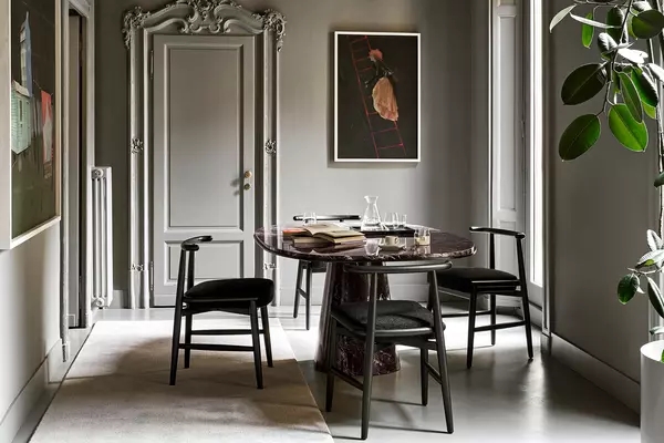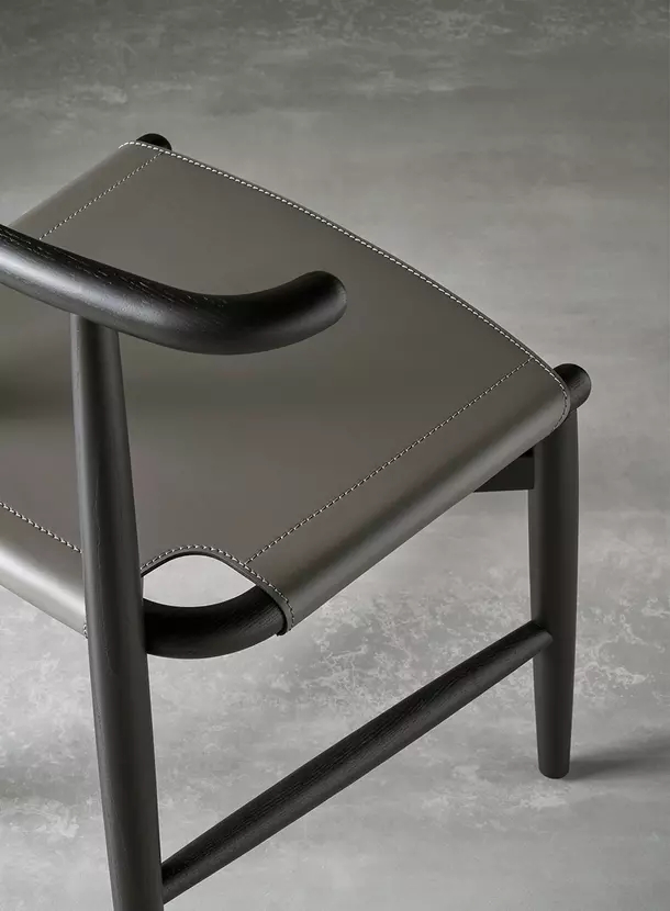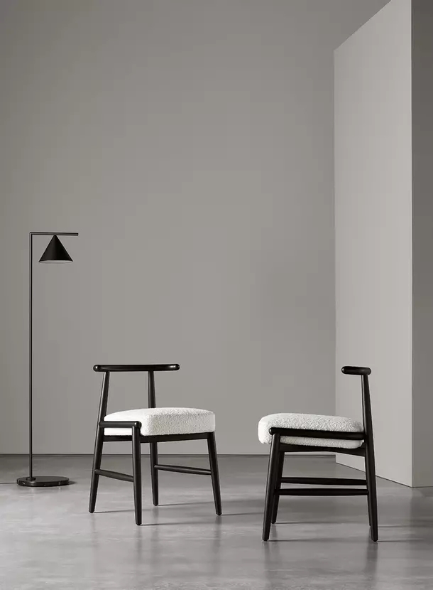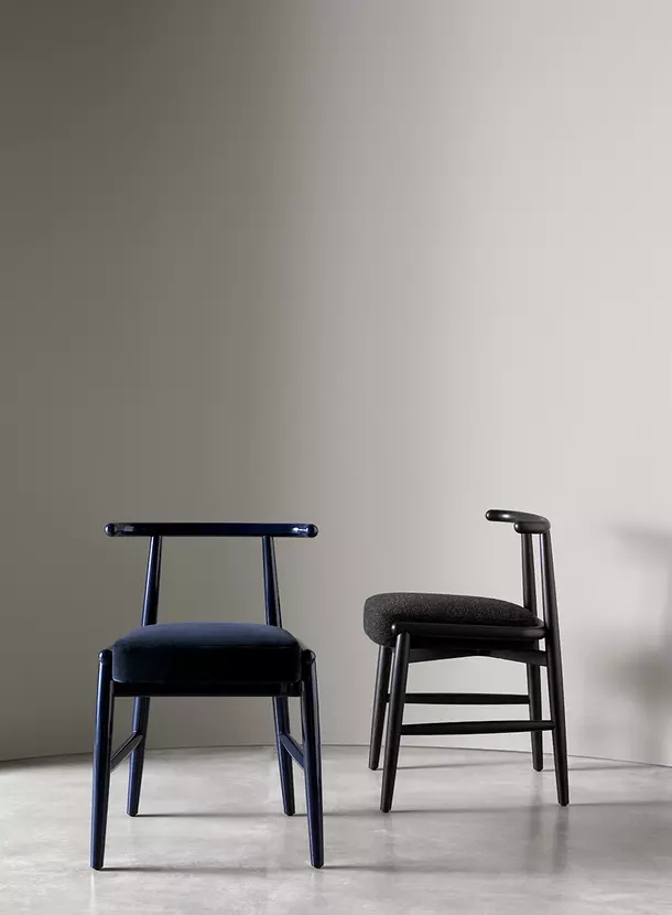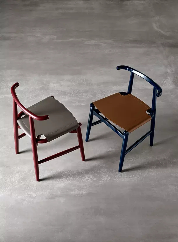 Emilia椅子的特點是輪廓清晰,視覺效果好;這個系列因其小尺寸和均衡的比例以及基本的實木結(jié)構(gòu)而脫穎而出,其溫暖的感覺與柔和的圓形形狀完美結(jié)合。木質(zhì)版本更具有現(xiàn)代感,而光面或啞光漆面版本則變得更加優(yōu)雅和精致,表現(xiàn)了品牌的折衷主義。對于Emilia椅子,有兩種不同的座椅可供選擇:一種是織物或皮革覆蓋的軟墊版本;另一種是馬鞍皮的版本,看起來更加堅定、嚴謹。