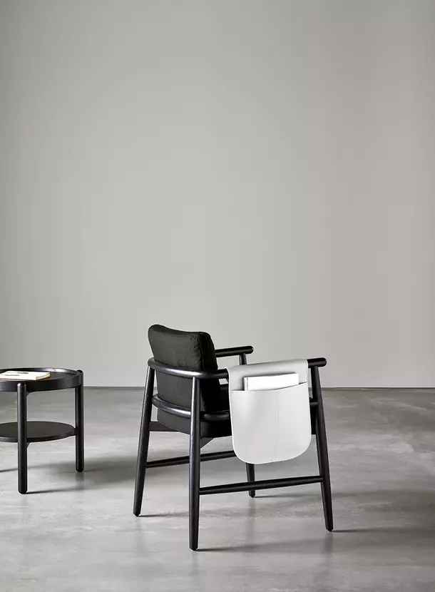 兩個靈魂封閉在同一個身體里。Teresina是一款椅子,也是一款休閑小扶手椅,其特點是由于橡木的溫暖和堅實,基本的線條巧妙地加工成了其形狀和結構。不同的版本在舒適性和美學方面都有不同,"soft "的版本,更溫馨,椅背和座椅都有軟墊,上面覆蓋著系列中的紡織品和皮革。而 "Kuoio "的版本,由于采用馬鞍皮主體構成了背部、扶手和座椅,看起來更加堅實和果斷:特殊的馬鞍皮形狀與橡木框架結合在一起,形成了懸空的座椅,凸顯了它的嚴謹性。它有一個儲物袋作為附件,可以放在左邊或右邊,甚至可以放在兩邊,由你選擇。這就是這個系列如何根據所選擇的飾面和顏色而產生不同的建議,創造出多功能的座椅,裝扮和詮釋每一個生活環境。