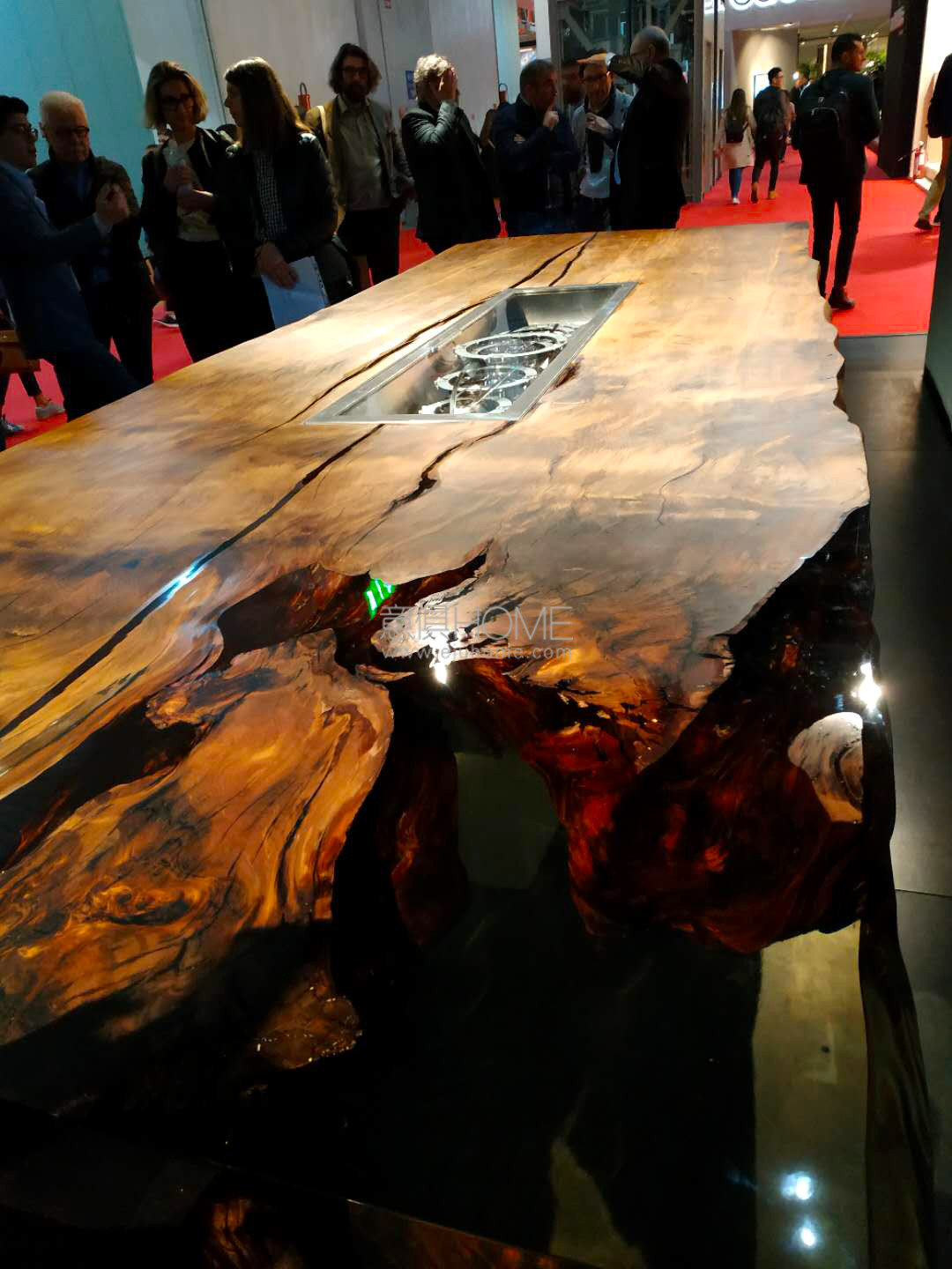 最大的亮點來自機械,樹脂與實木餐桌的結合,體現出一種穿越感,也是超高技藝的展示。