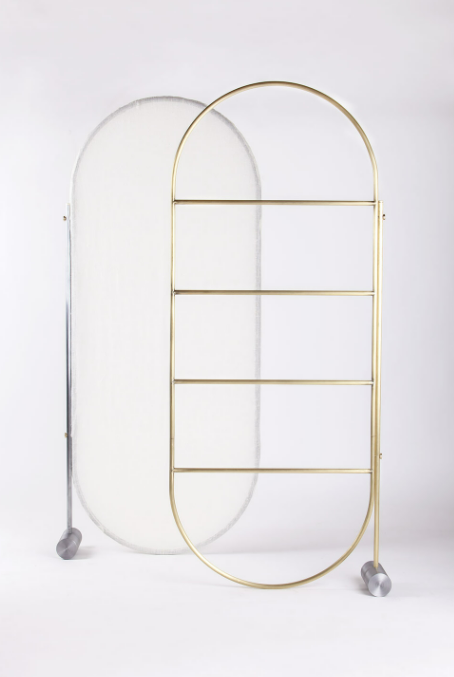 permeabile e crea divisioni leggere dello spazio; con la cornice nuda, arricchita di traversi orizzontali diventa un portaoggetti polifunzionale.