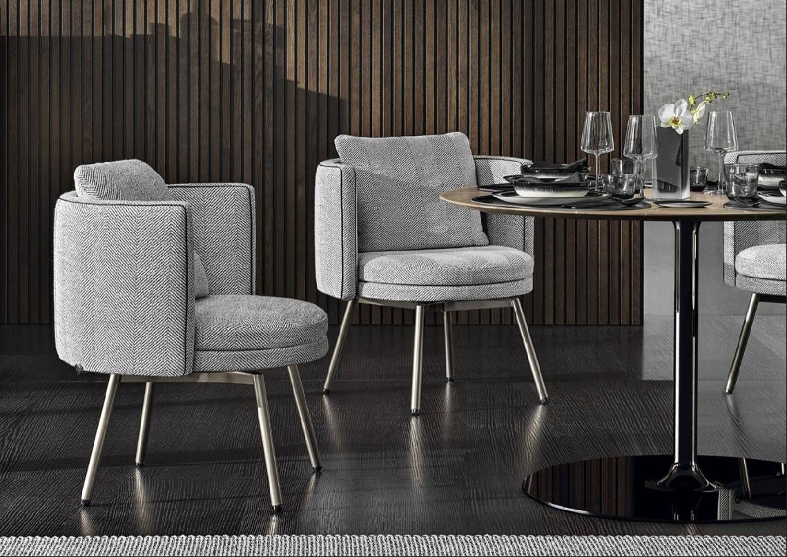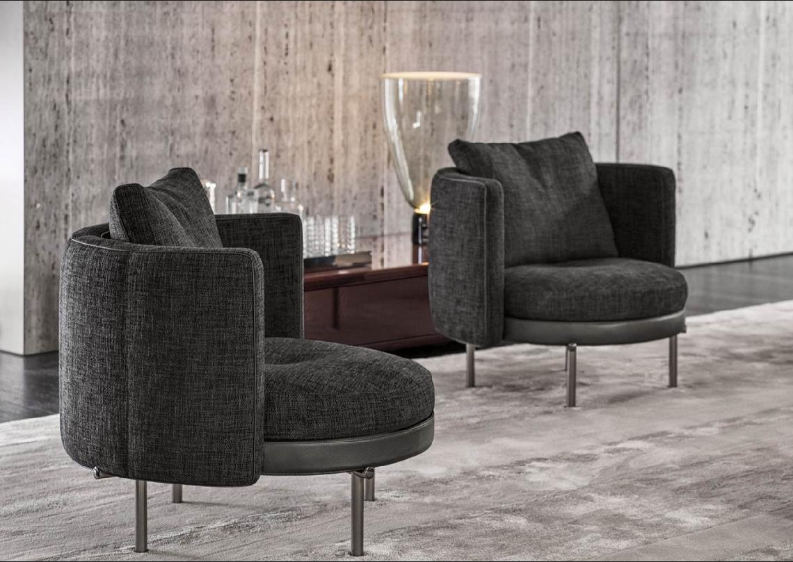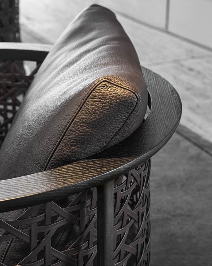 The Torii family includes sofas - with high or low backrest and a linear shape, rounded at the arms - inclined sofas with a combination of two different depths, armchairs and lounge and dining little armchairs, ottomans, coffee tables, and a slender, oval-shaped console table, ideal for placing anywhere in the living area.
