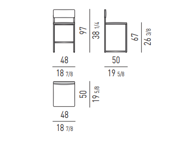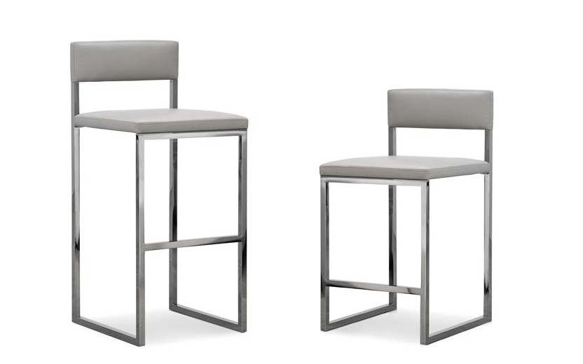 Available in two heights of 97 and 110 cm, perfectly adapting to the most diverse residential and Hospitality contexts, the metal base is available in the glossy Black-Nickel finish while the upholstery of the padded seat is available both in the leather version and in the fabric version.