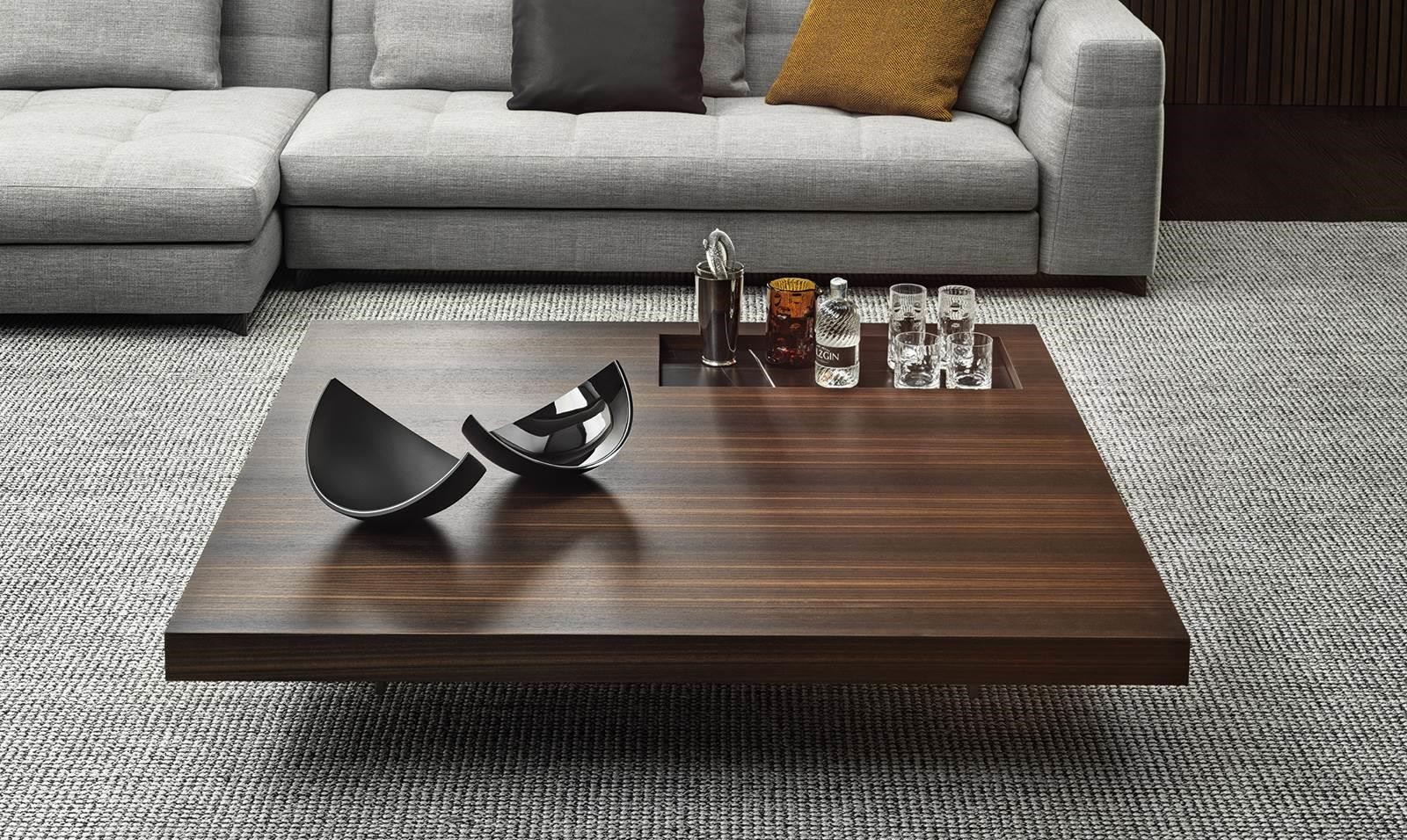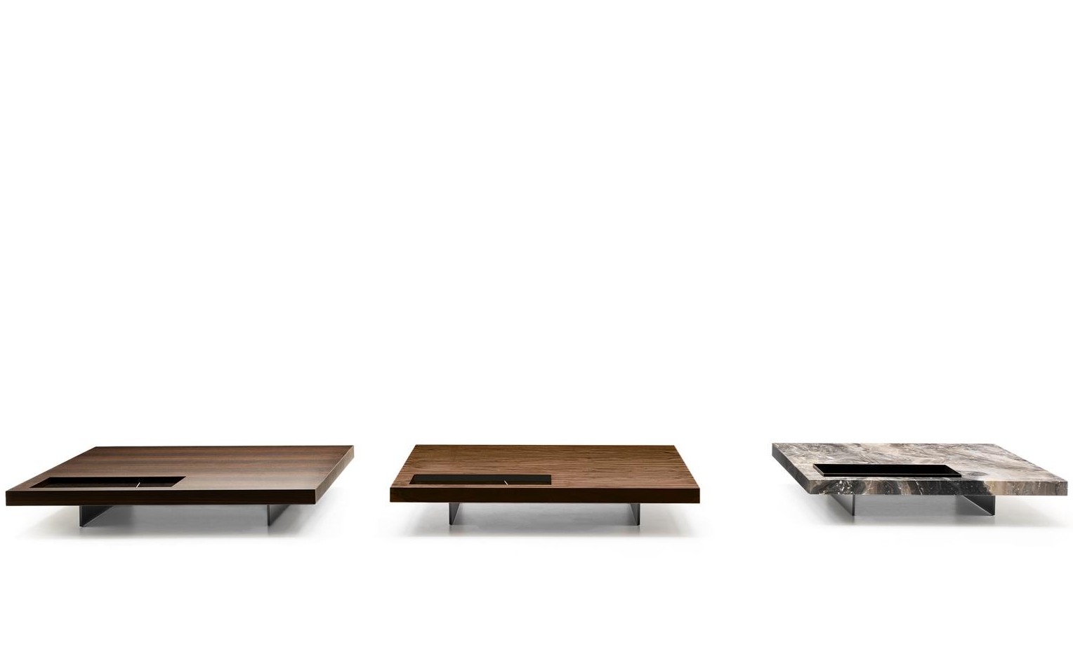 The Boteco coffee tables reveal the Brazilian architect’s architectural approach and are characterised by their lower height and the impressive 8 cm thickness of the top, which hosts a built-in tray.