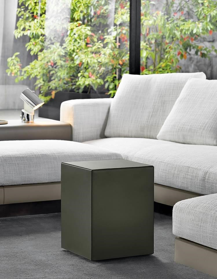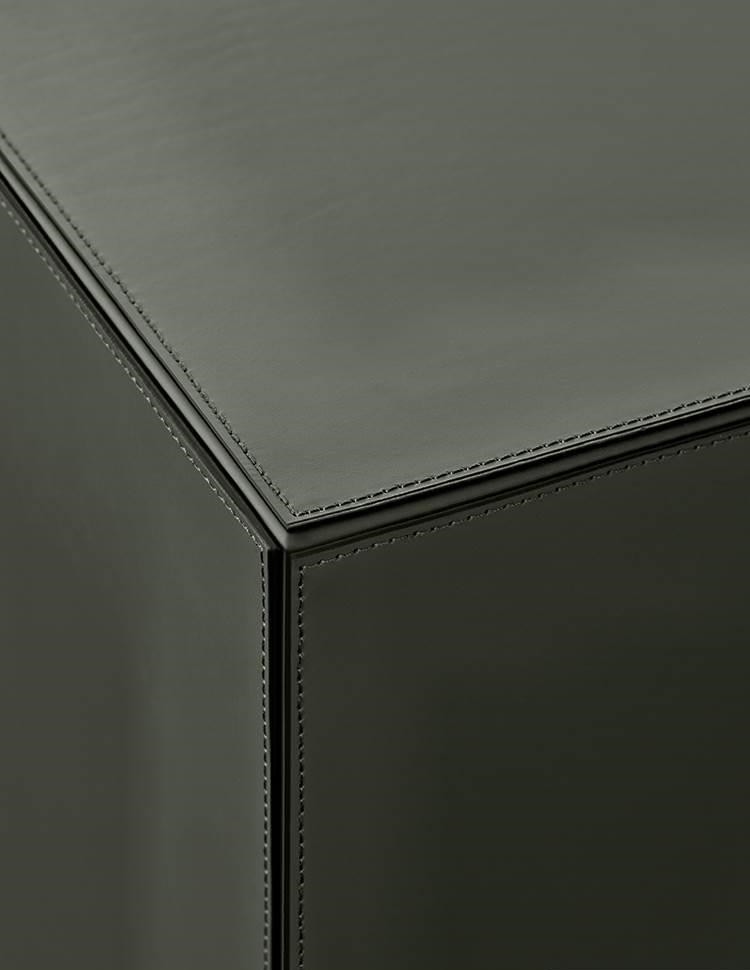They range from the parallelepiped volume, which is tall enough to be set alongside a dining table as an additional seat, to coffee tables for holding or storing objects, and nightstand for the sleeping area. The rich ensemble is completed by the console table, which sits on metal blade-like legs with a Black-Nickel finish.