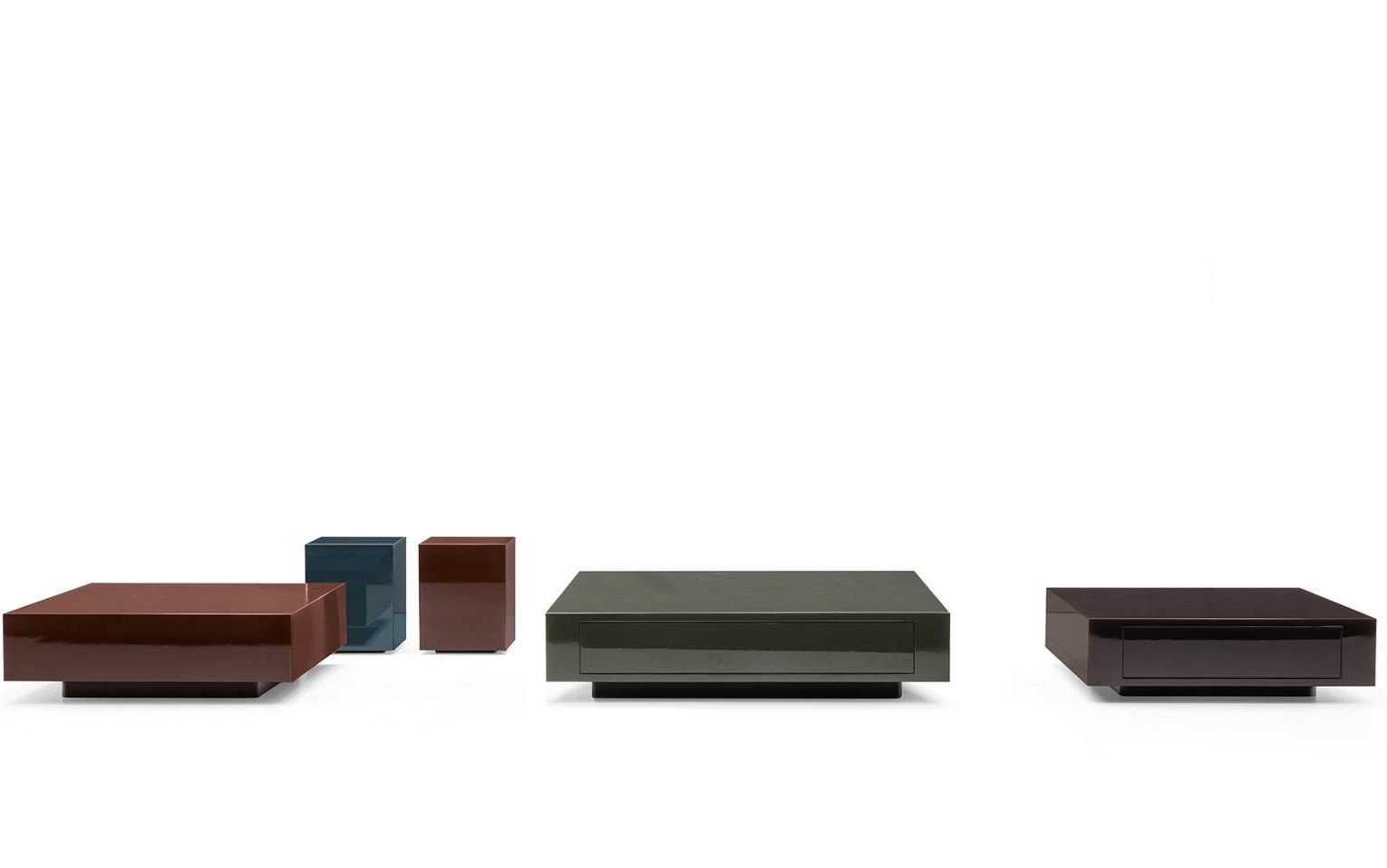 The Solid coffee tables, in all sizes, are available both in the glossy lacquered version in the colours Corten, Muschio, Petrolio and Moka and in the open-pore ash finish in Moka colour. Some of them are useful storage elements thanks to drawers, with interior in Moka-coloured ash and push & pull opening, almost imperceptible by the eye thanks to their perfect aesthetics.