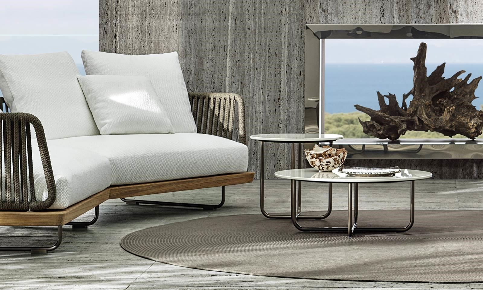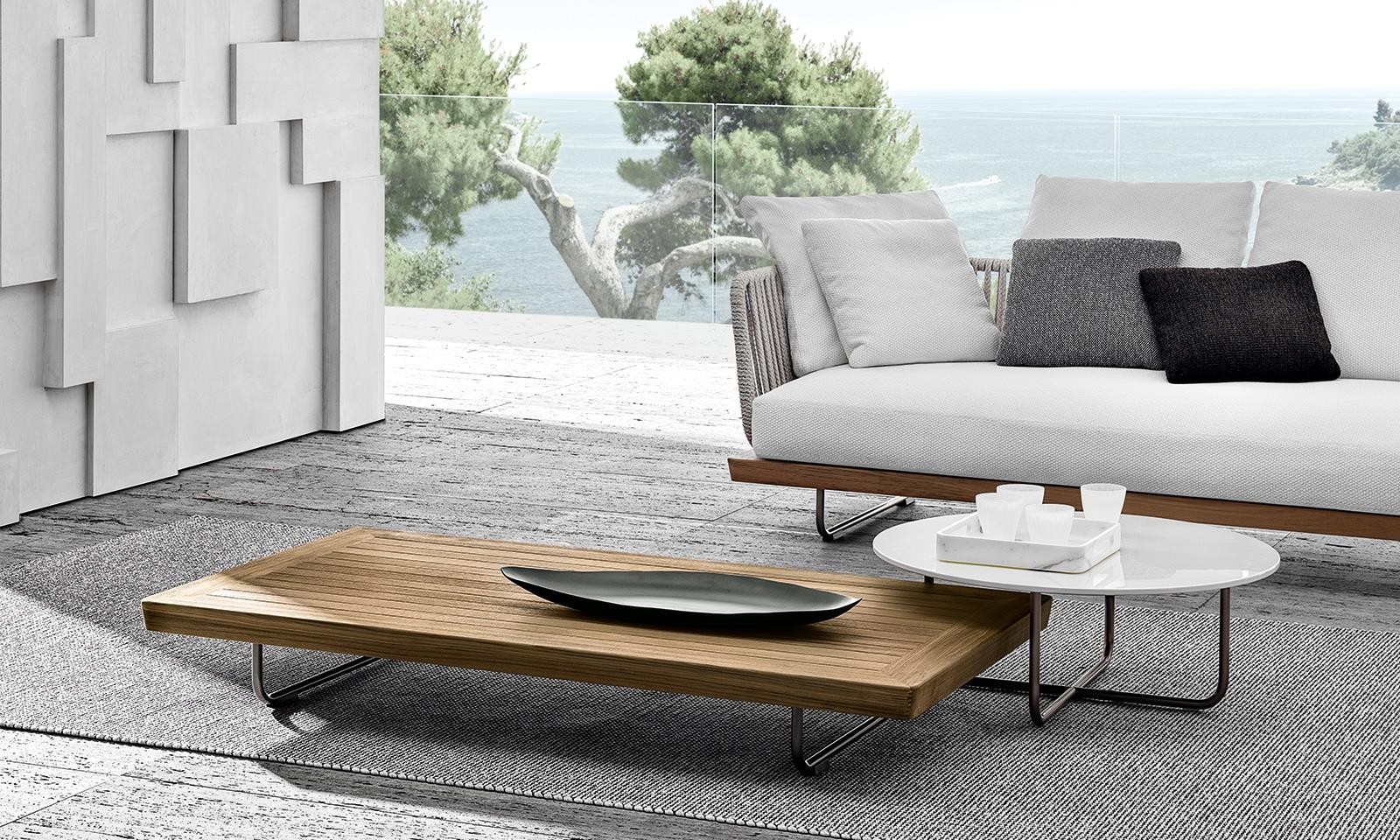 The Sunray Meg family hosts a series of versatile, practical coffee tables in various sizes and heights that blend in perfectly with the most diverse compositions of the Outdoor collection.
