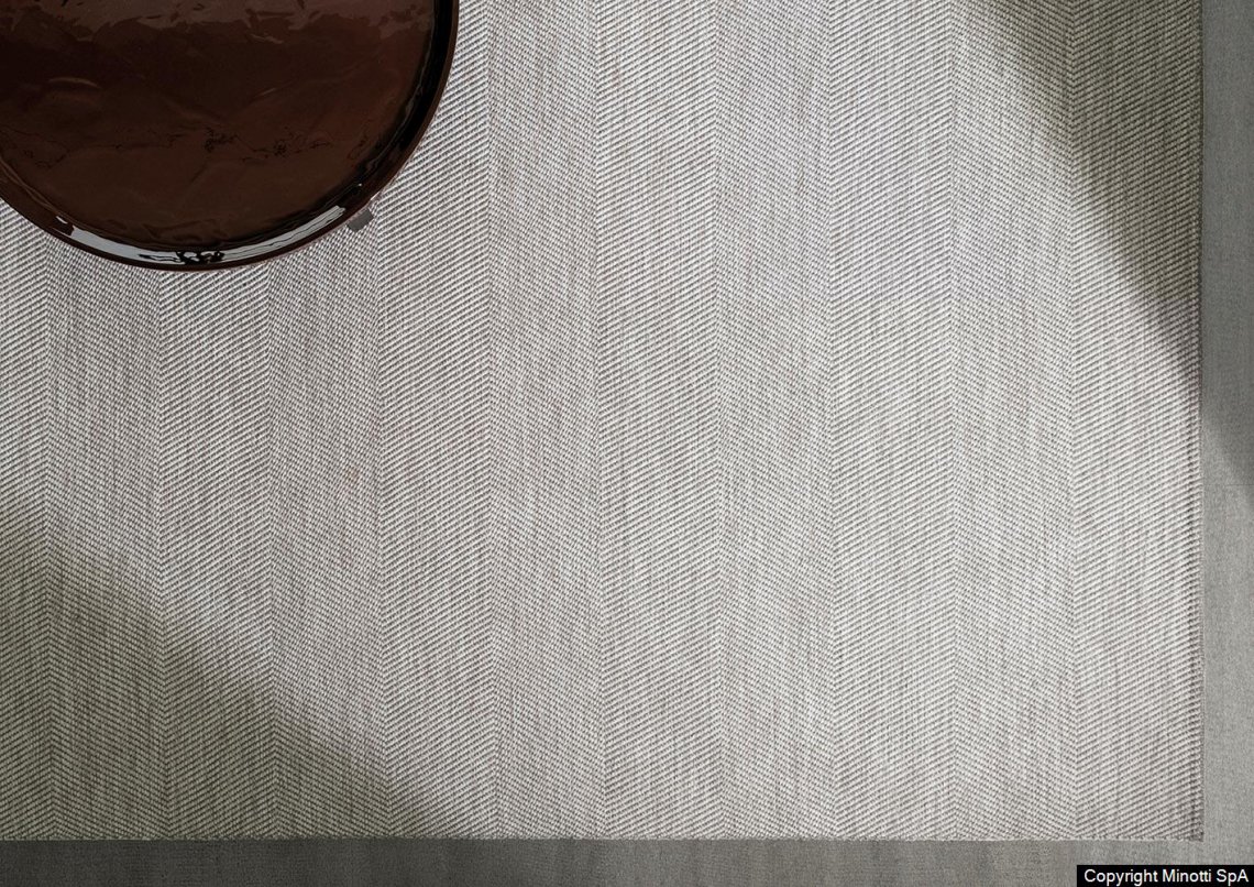 Made with the same materials and techniques as the Osaka rug, with which it shares the same characteristics, the Chevron variant features a dynamic continuous decorative motif, composed of tweed that underlines the couture esprit of the craftsmanship.