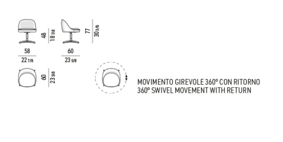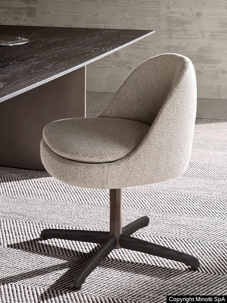 The possibility of having the armchair, the dining little armchair and the lounge armchair also in the 360° swivel version with return (base in polished Bronze-coloured varnished metal, with sheathed spokes in solid ash with an open-pore Liquorice-coloured lacquer, or in solid Canaletto walnut with Light Brown stain) makes the Sendai seats particularly comfortable for both residential and hospitality environments.