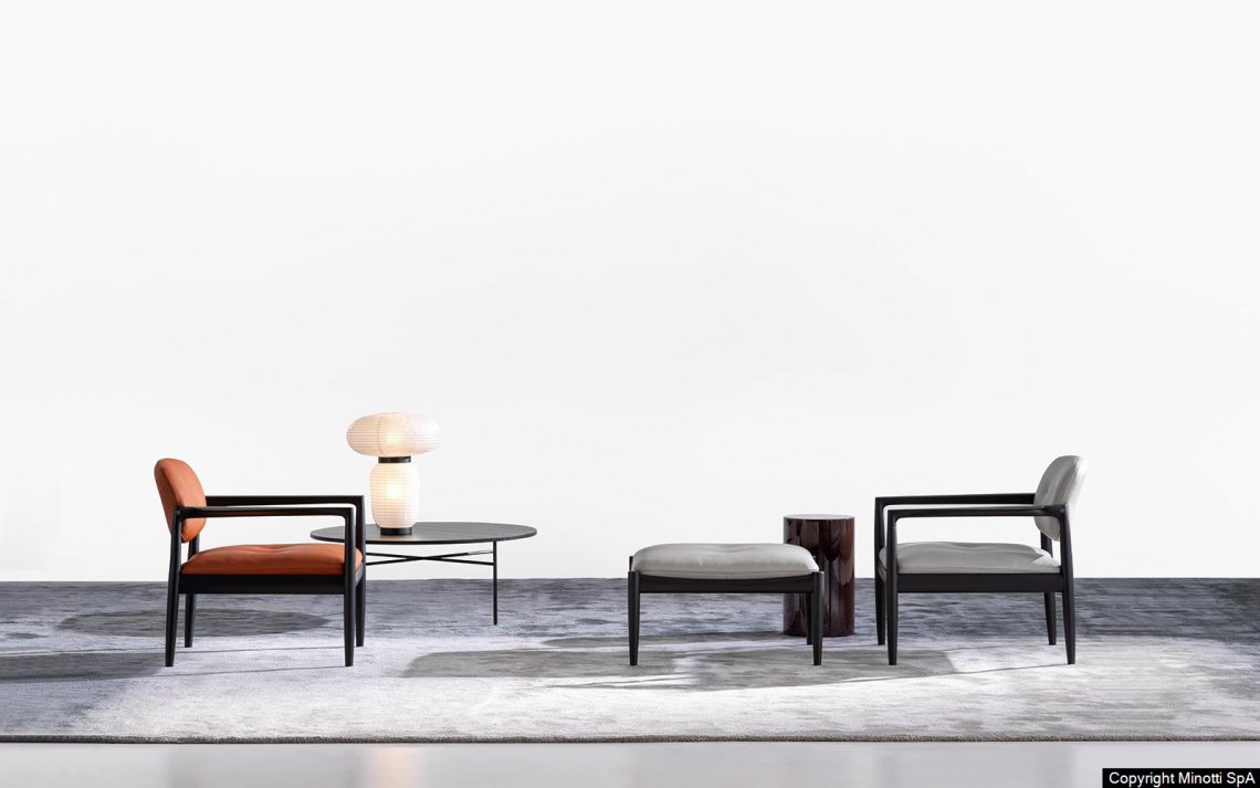 A contrast in constant equilibrium thanks to the skilful craftsmanship of the Japanese-Danish couple Inoda+Sveje. The continuous cross-reference between the two cultures, their styles and manufacturing skills shapes a project composed of an armchair, a dining little armchair and a bench/footstool characterised by a dual lightness: physical and aesthetic.