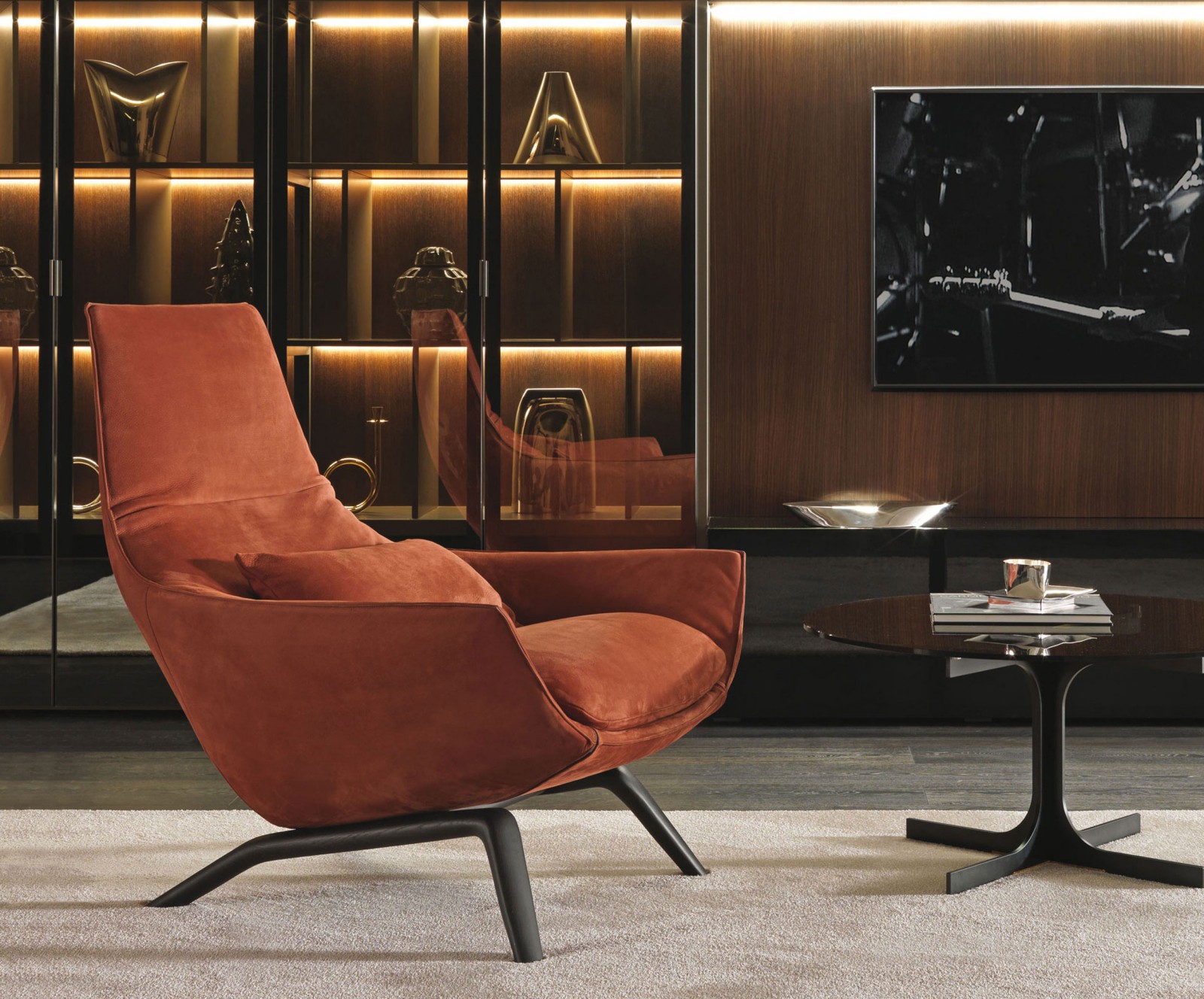 嫻熟細密的手工針步無瑕整個扶手椅的組合,成就超級柔軟之感。有一個可拆卸面罩的擱腳凳備