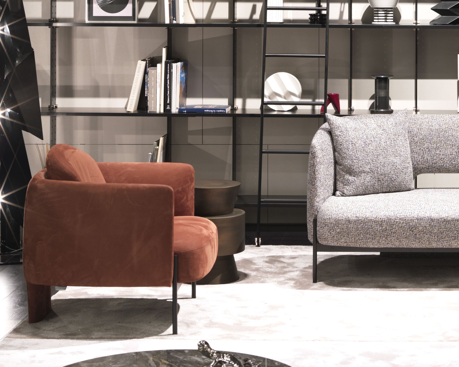 運用在正面纖細的金屬支腳與后背支持的支柱間,倍顯設計背后簡約卻不簡單的理念。