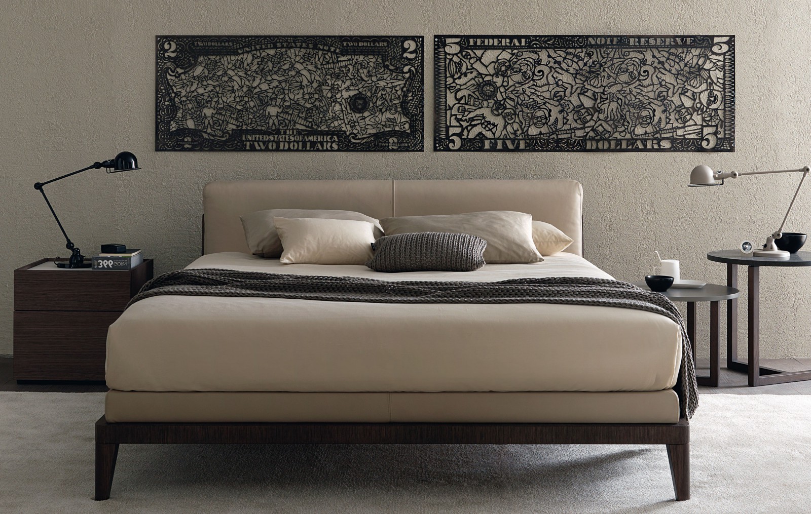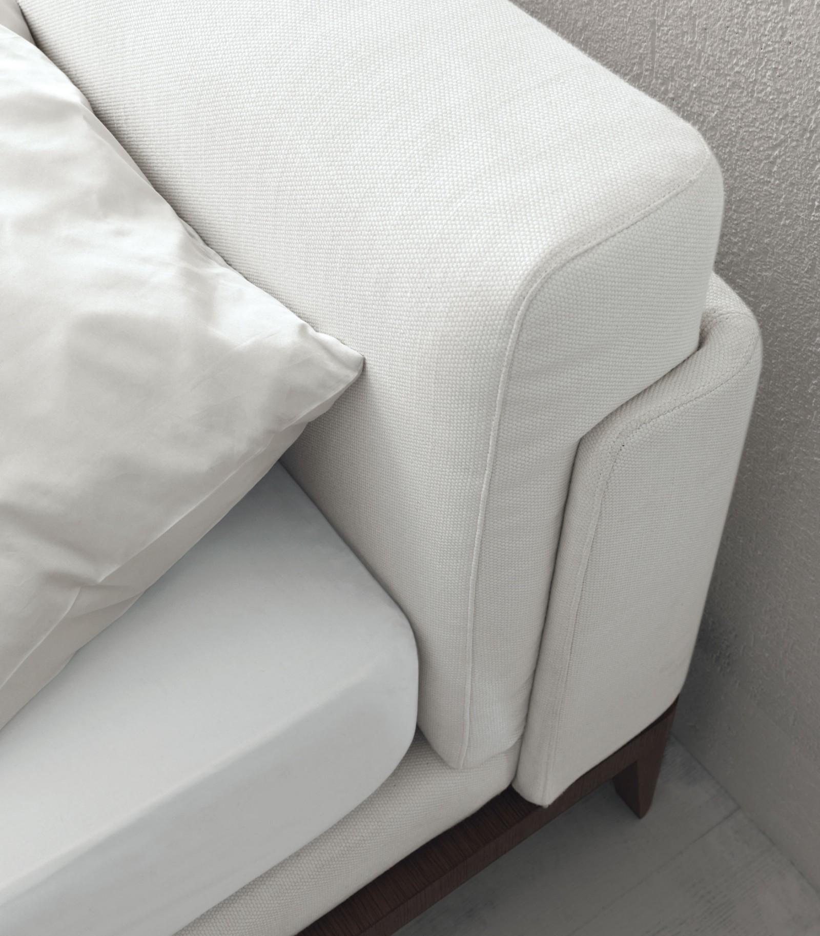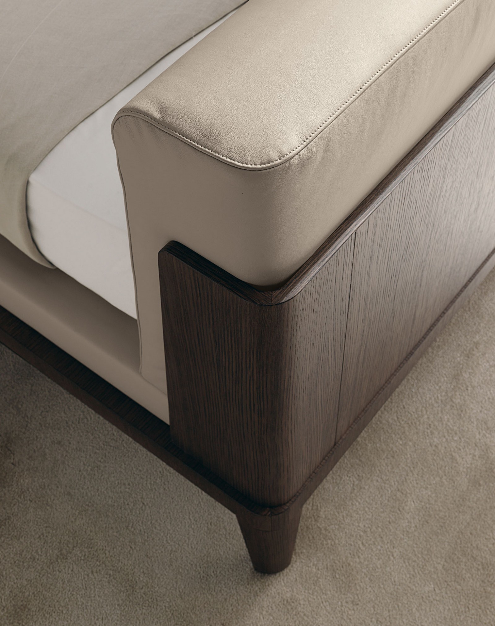 堅固的木質(zhì)底座,視覺上被極為流線的床頭板和撐腳所柔化,形成完美比例。
