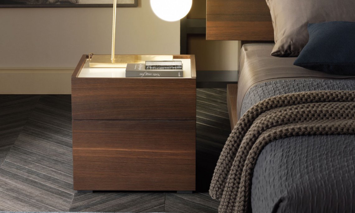 各式各樣的抽屜柜和床頭柜,巧妙與木材、漆器和玻璃結合。頂部弱化了繁瑣的結構