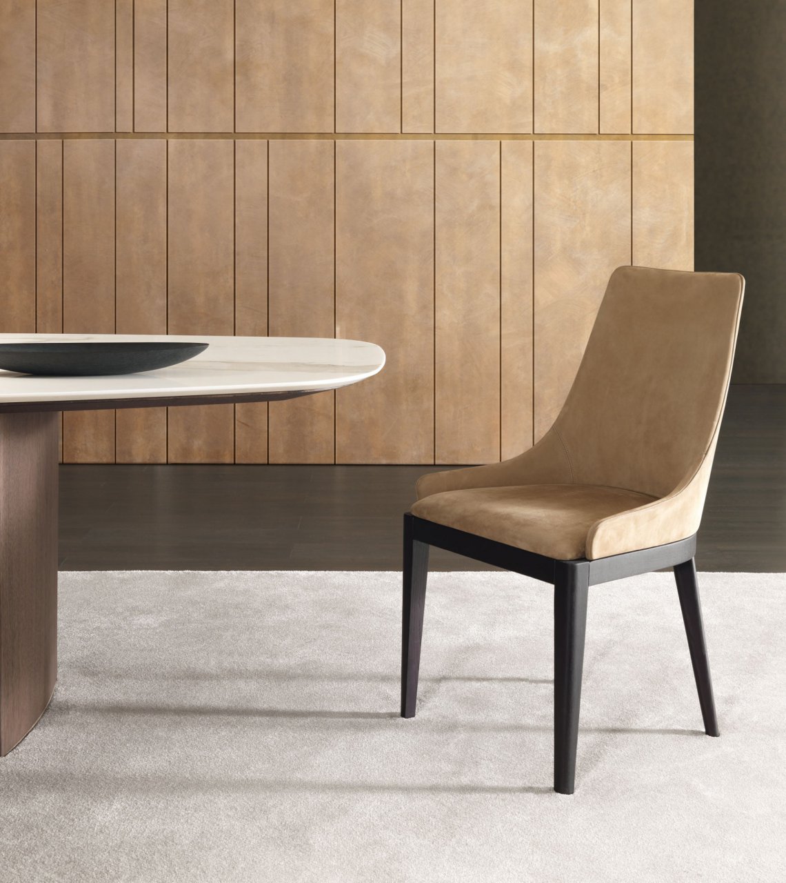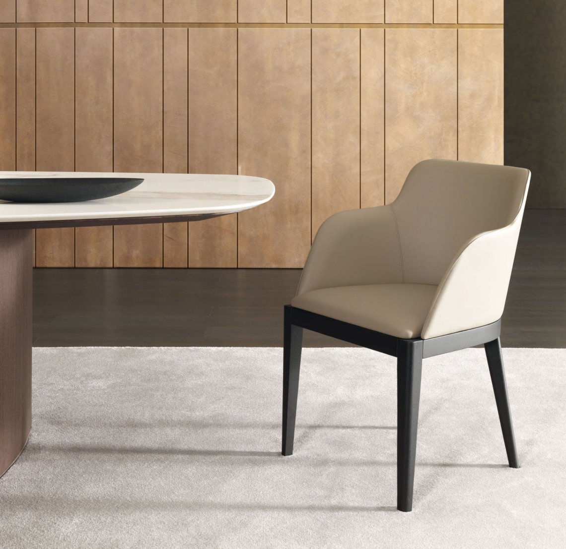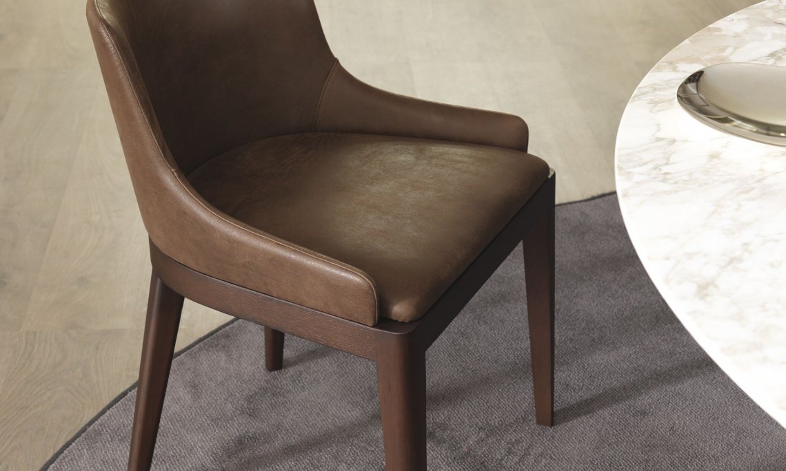 Cleò是一種將古典風格與當代情調融合一起的產品。實心橡木撐腳,線性形狀設計被光滑的彎形靠墊所柔化。表面材質可選灰橡木色,黑色或碳橡木色,軟墊也可選用織物或皮革,高低兩種靠墊式樣。
