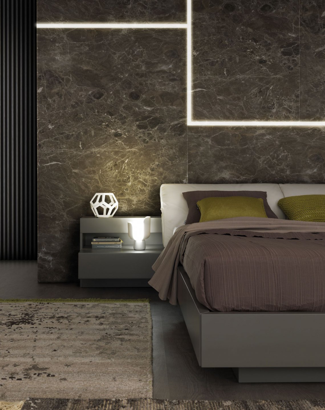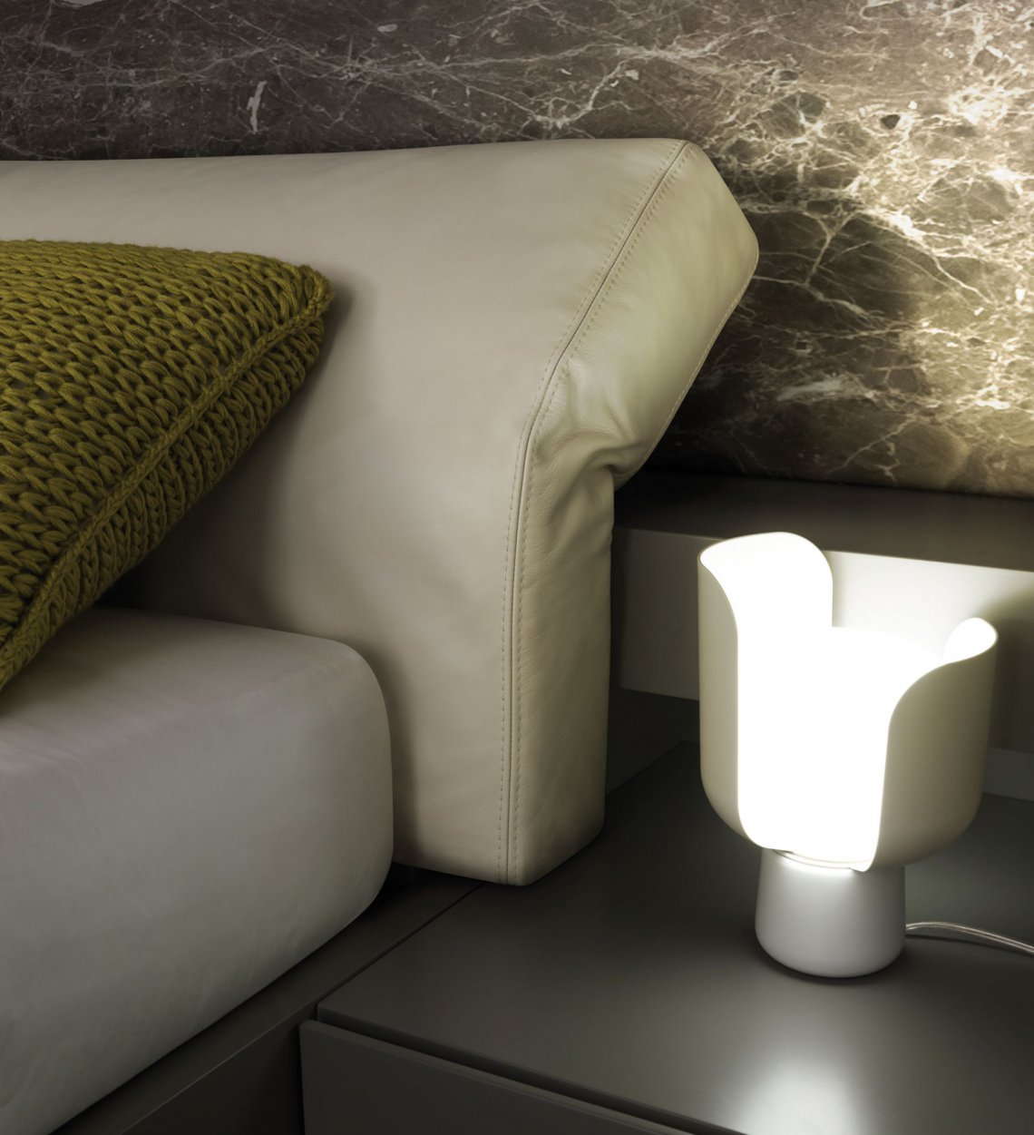 Bridge是風格和功能兼備的產品。床頭板由兩個可調節多角度的軟墊組成。多元功能的Bridge具有存儲型床架并可選增添兩側的照明柜體。任意調配, 美觀實用。