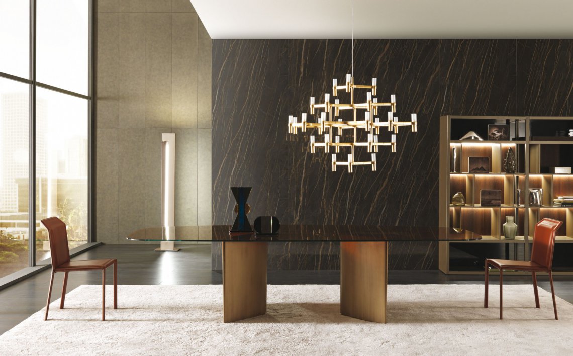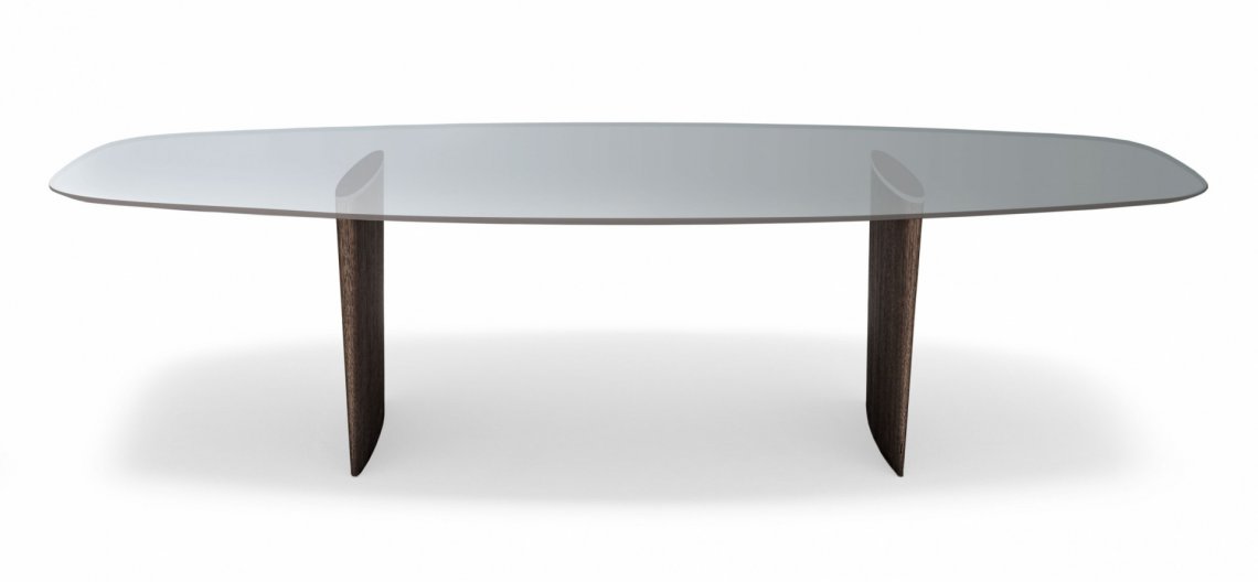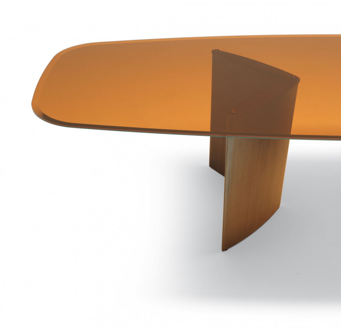 一張桌子,組合不同材料,同時也展示了一種當代科技。桌面的細薄修邊可減輕產品厚度的視覺感知,使其輕巧懸掛。撐腳部分讓人聯想起飛機的機翼,即是這個產品的靈感來源。