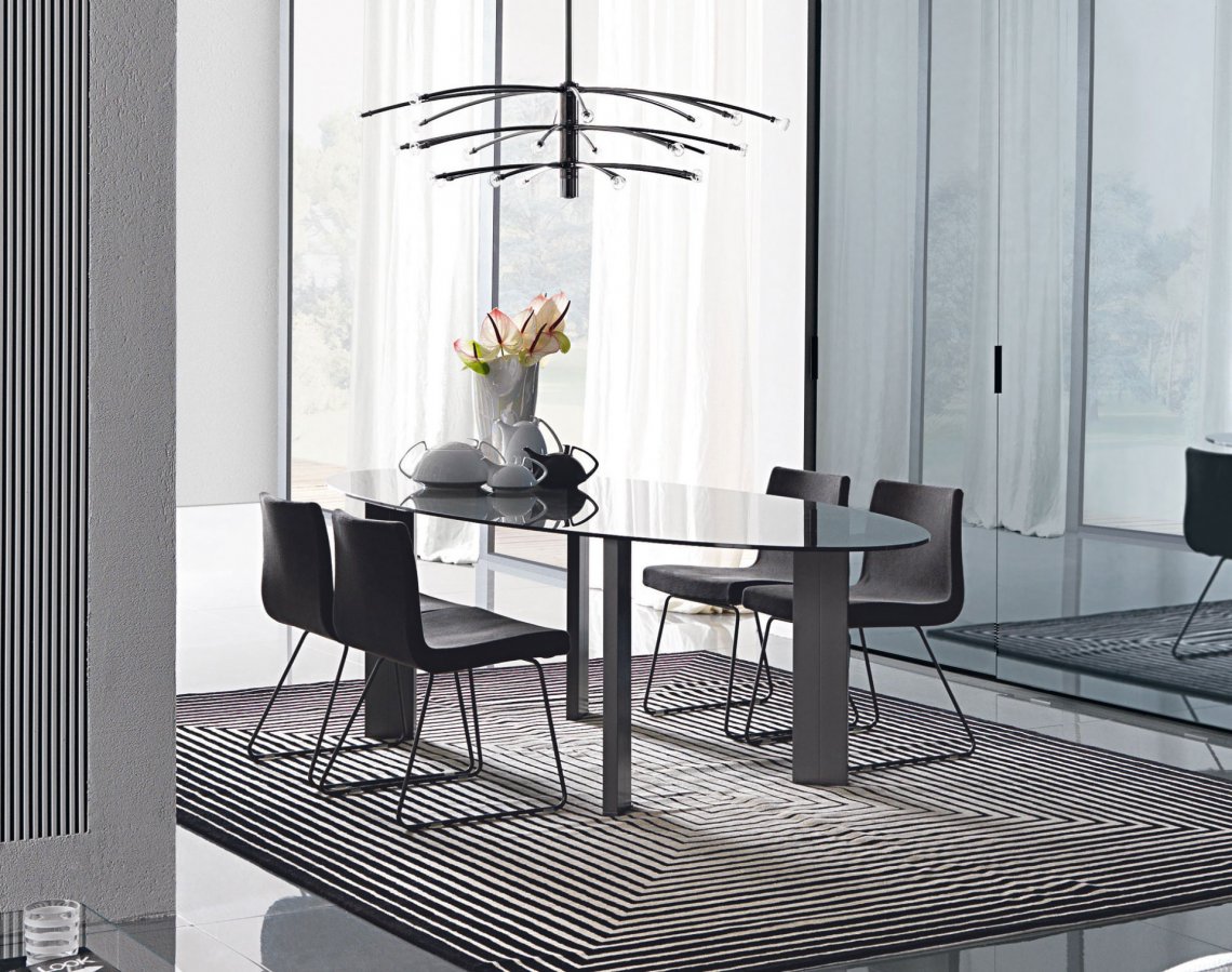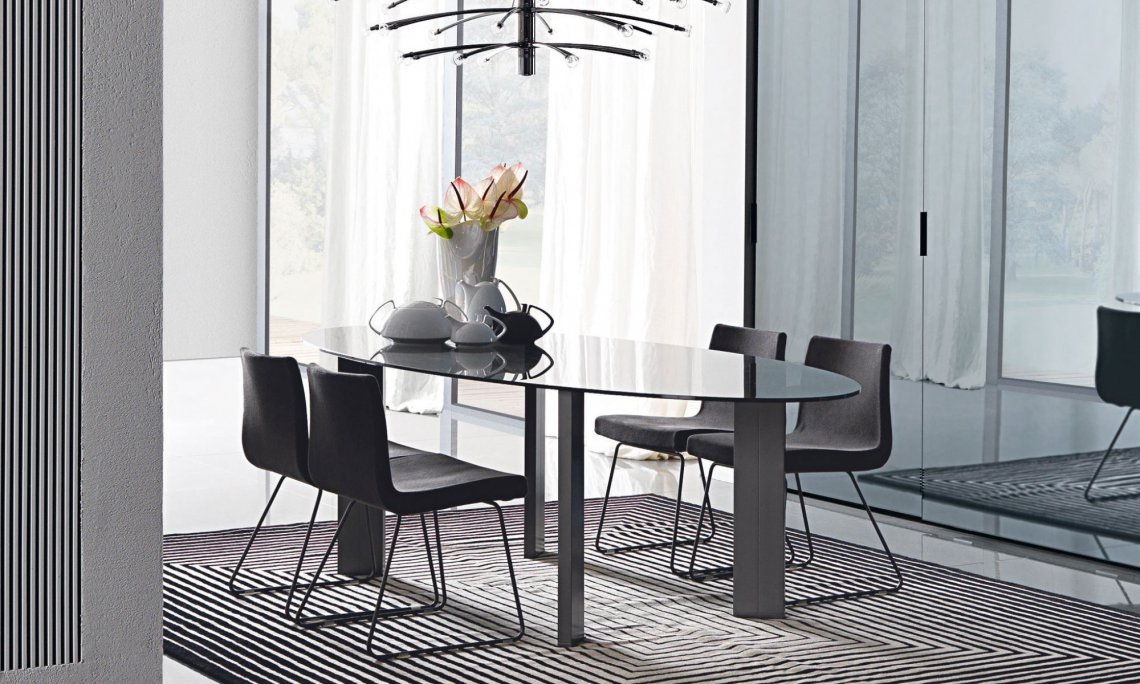 極具現實感和精致感的Taul似乎幾乎徘徊在太空中:精致的透明玻璃臺面,像摩天大樓一樣向上彎曲腿腳,支撐令人驚嘆的桌面(矩形,橢圓形,圓形或正方形版本),趣味的顯現意想不到的迷人非對稱性。