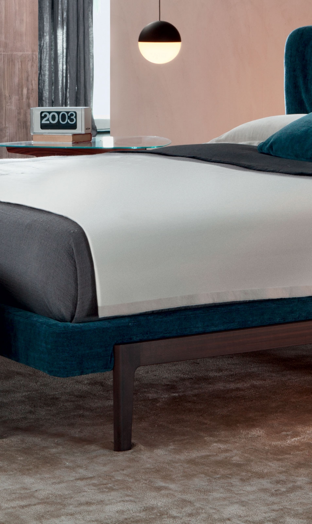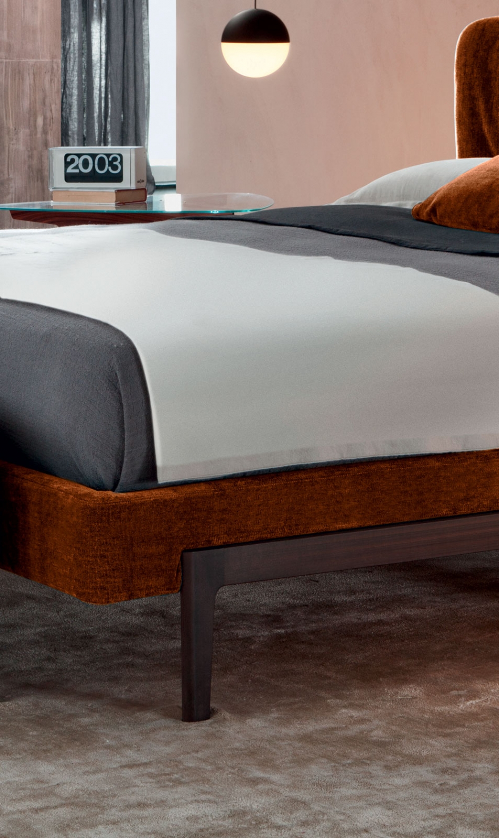 位于倫敦市中心的Fullham路名給了這位米蘭設計師靈感,從而設計了這張舒適和帶來整夜舒適睡眠的床。木質基座,可選不同類型的木紋以適應整個臥房的風格,并使床成為空間的主角。織物或者皮革包裹的床靠背提供了舒適和休閑的位置用來休息,閱讀或看電視。一個放置在床尾的座榻完善了這個項目。