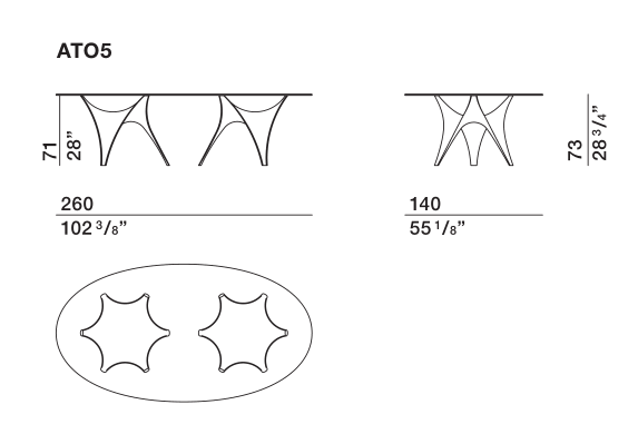 Arc餐桌完美體現了創新的設計理念,這也是它的基本特征,基礎形狀由目前在現代建筑中使用的技術結構獲得靈感:一種新的“輕質”的水泥混合了顏料和特殊纖維材料以獲得低比重的堅固結構,壓模成型后再染色。通過這種方法可以制造形狀復雜的物體,Arc餐桌結構設計上采用了強度及彈性領域的創新理念,材料可以回收循環利用,整個生產周期低環境影響。