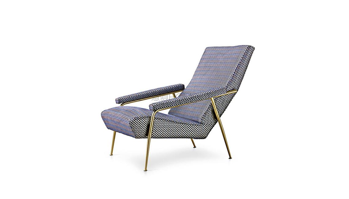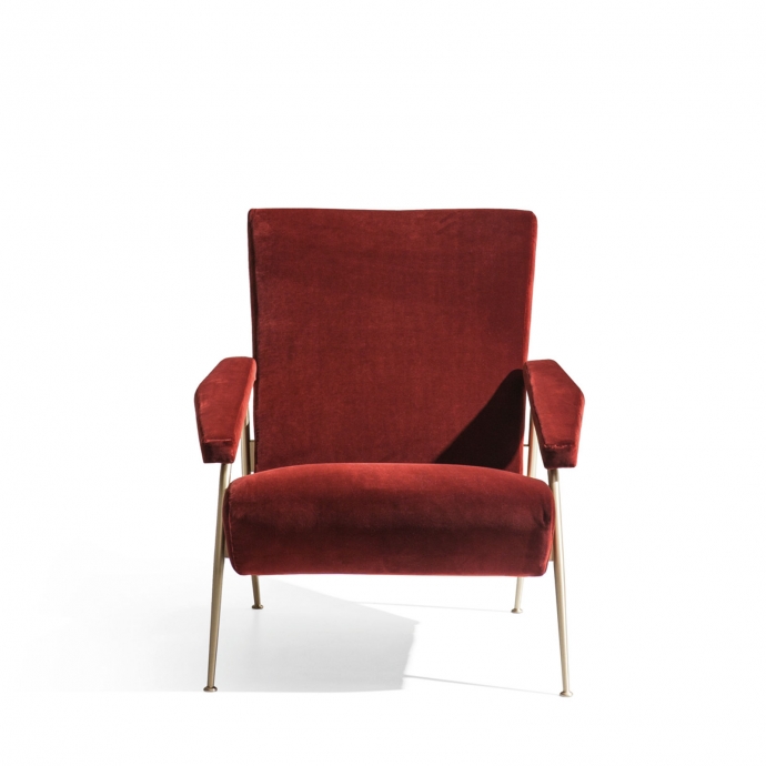 設計于1953,D.153.1扶手椅是Gio Ponti位于米蘭市Dezza大街的的私宅里家具的一部分。這個型號是由Molteni&C在ponti檔案館的原始圖紙基礎上的現代演繹。黃銅結構,由雙色皮革或“punteggiato”織物面料包裹,這款面料由Ponti于1934為Rubelli設計。面料重新詮釋了天鵝絨編織的古老技藝,使它能夠滿足當代對圖案花紋的需求,如具有不同漸變顏色的交錯磁盤狀花紋排列。在2012米蘭家具展上首發,D.153.1豐富了Gio Ponti的家具系列。