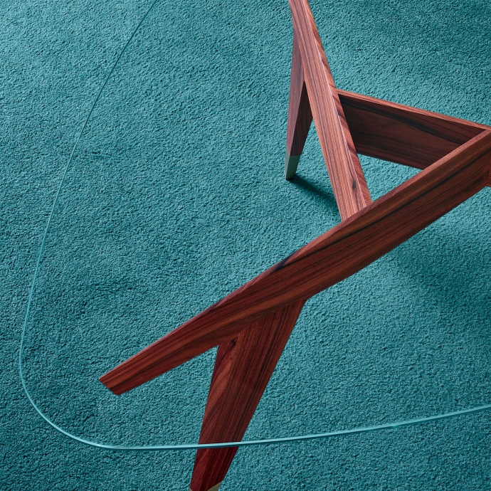 建筑、泛藝術,雜技般的比例關系和連接接口處理。一個品味無窮的茶幾,玻璃和玫瑰木之間的幾何對話–輕快并從抽象中萃取精華。D.552.2茶幾,木質框架帶玻璃桌面,當時為美國公司設計。D.552.2用玫瑰木實木制成,黃銅桌角,三角形超清玻璃玻璃桌面,屬于當時為美國市場設計的一系列產品之一。由Molteni&C重新投產的D.552.2茶幾屬于Gio Ponti產品系列之一。