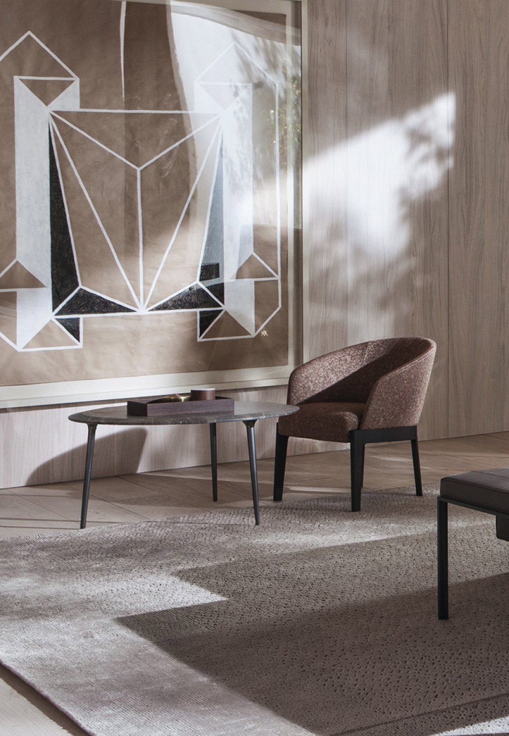 設計用于不同的功能; 可作為咖啡桌或小茶幾 使用,也可以與SLOANE系統(tǒng)元素相結合,構建出鉸接組合體。高 桌腿版本可作為小書桌、午餐或 晚餐的小餐桌。