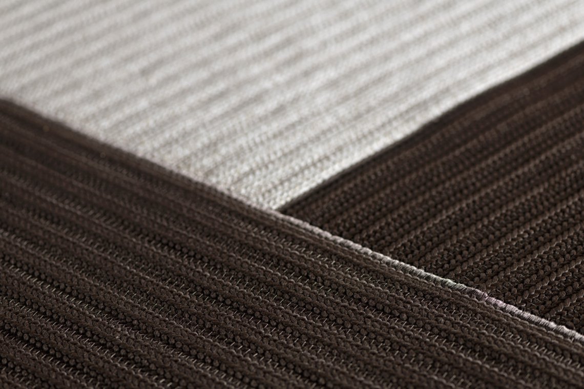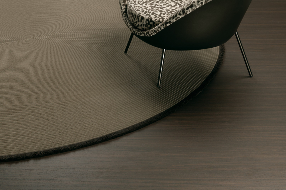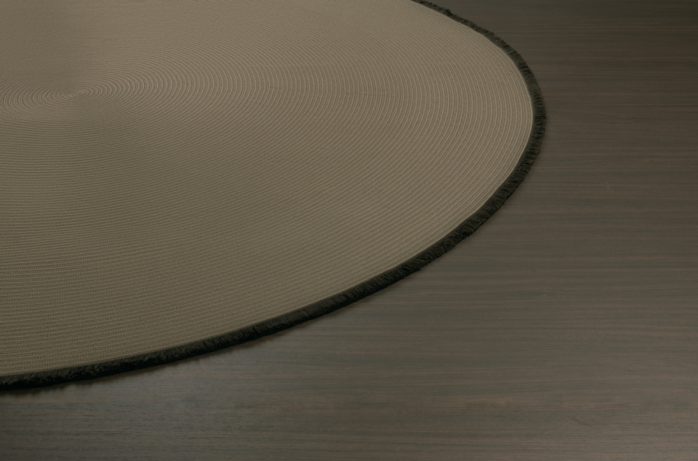 Musco, by Marta Ferri, proposes geometric patterns and run-up bands that enhance a palette inspired by the shades of the undergrowth. Available both monochrome in beige and olive green, and multicoloured in shades of olive green, earth brown and sand, it is complemented by tone-on-tone or contrasting fringes. There are two distinct shapes - rectangular and round - characterised by a rustic yet pleasant touch.