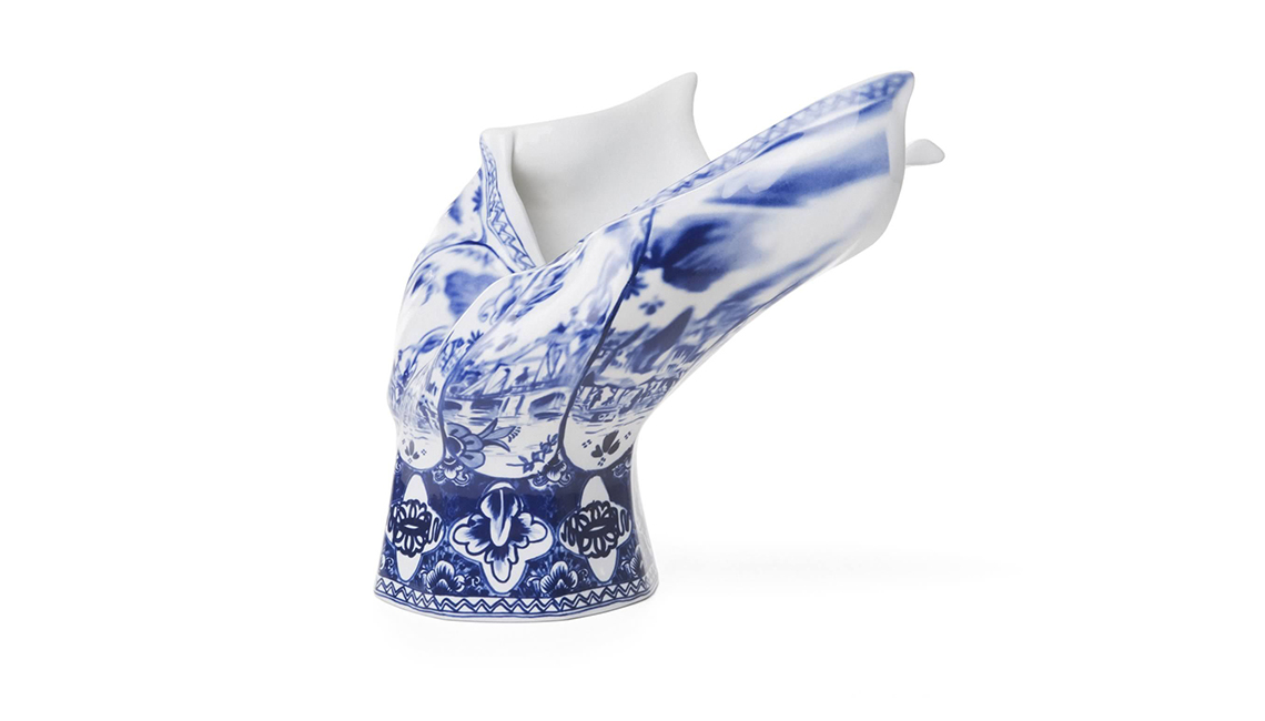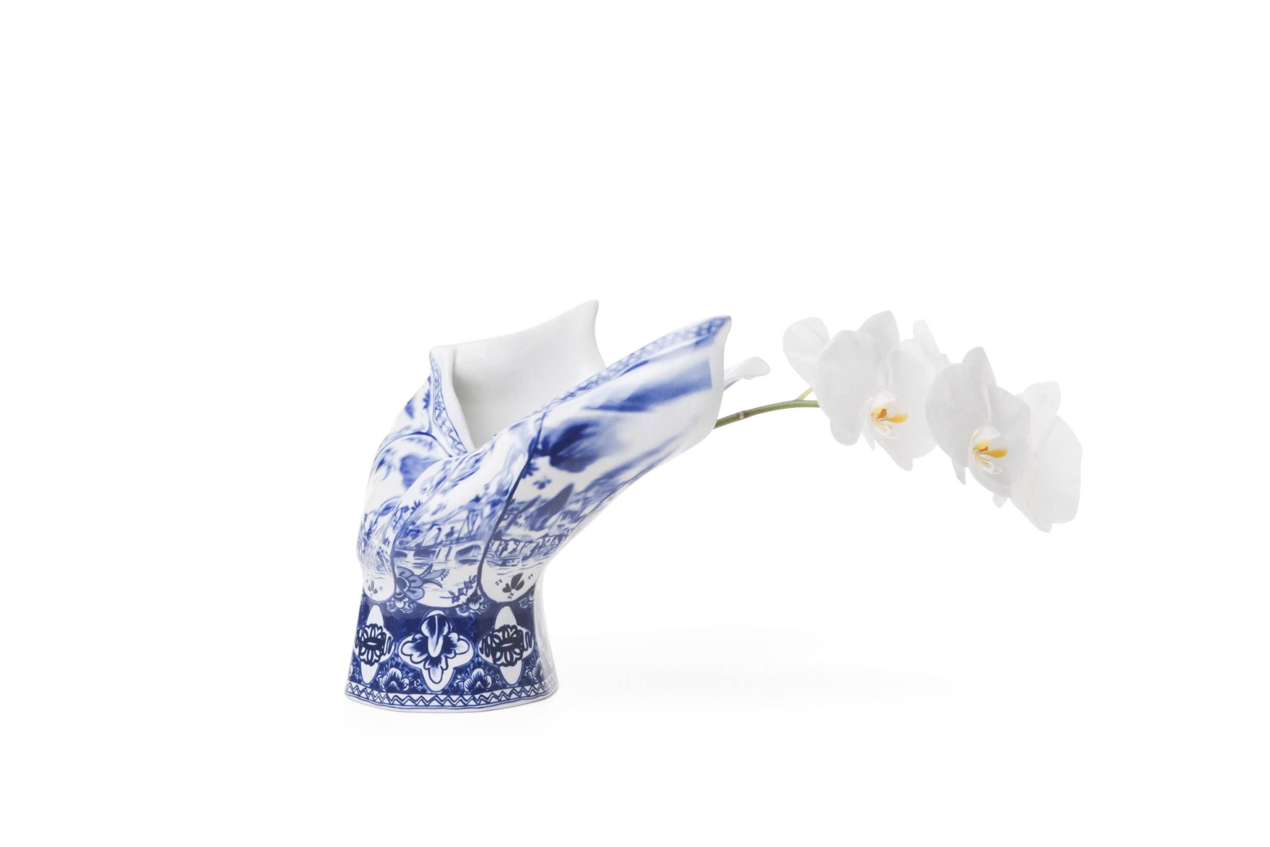 A classic Royal Blue Delft porcelain vase that experienced something truly bizarre… it has been blown aside by a powerful gush of wind. The wind motion becomes part of its features and its beauty also lays in the fact that it is bent but not defeated.