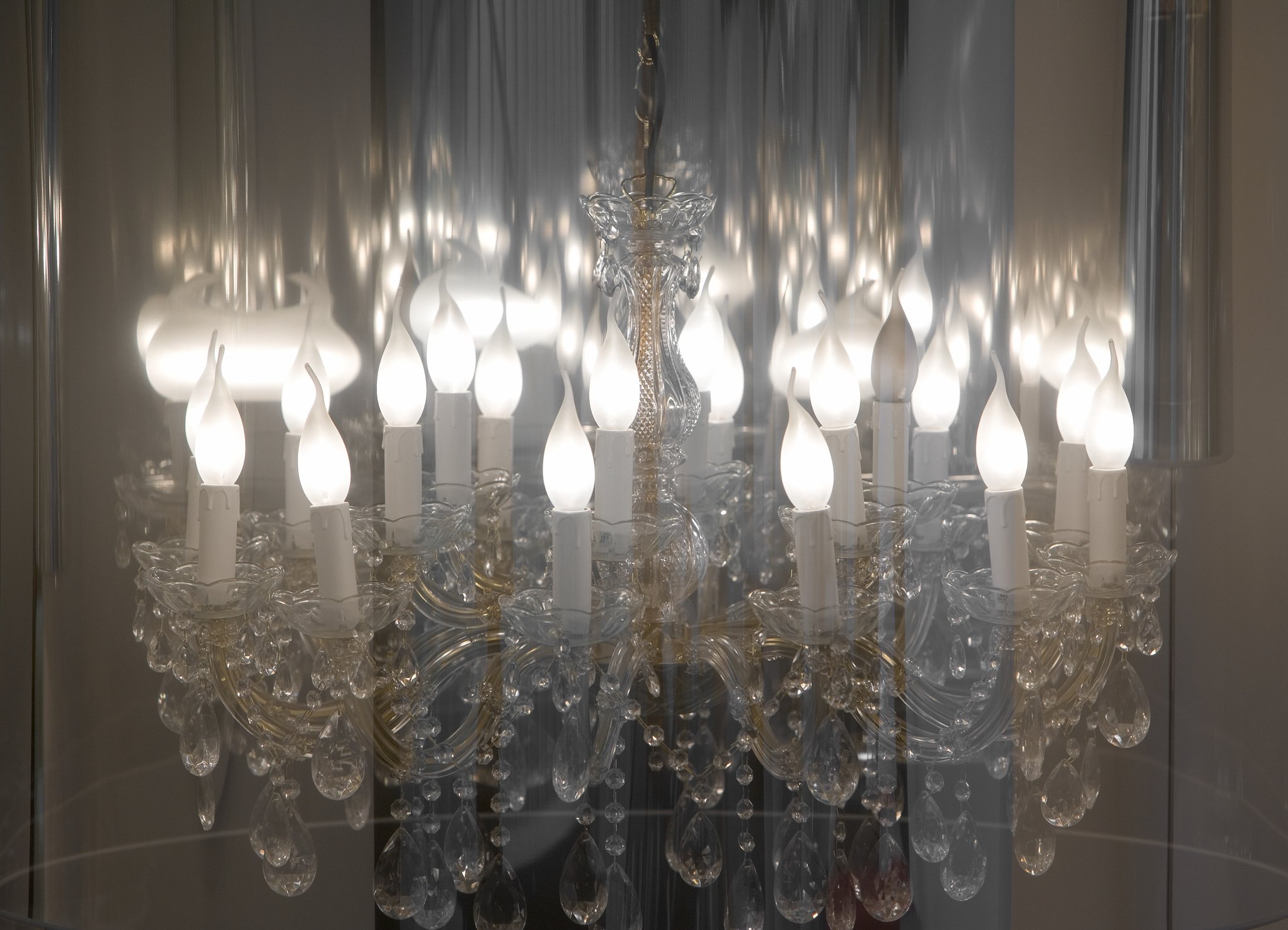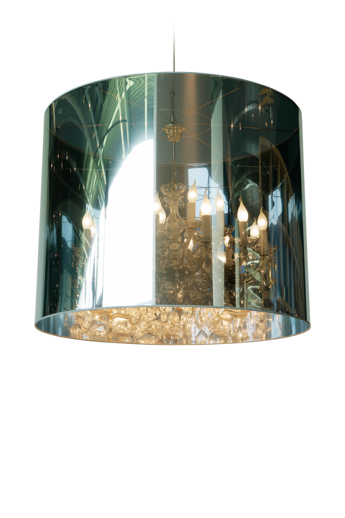 Light Shade Shade is a one way mirror that reflects its environment as well as concealing the chandelier within. When the light is turned on, the ‘Light Shade Shade’ reveals its unforeseen identity and projects the former beauty that lies within.